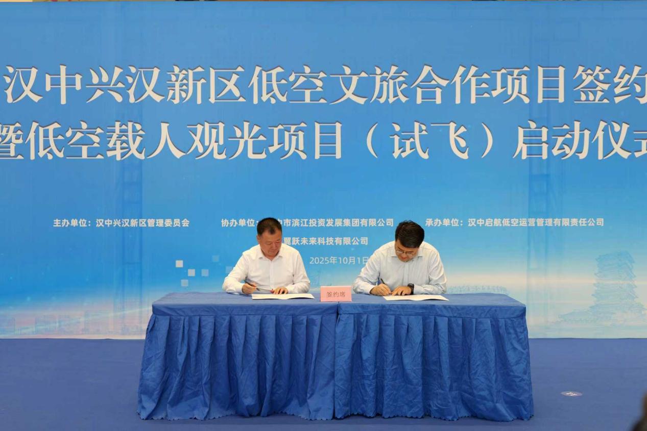 阳光讯(记者 任军)2025年10月1日上午,汉中兴汉新区低空文旅合作项目签约仪式暨低空载人观光项目(试飞)活动在汉中市文化产业园盛大启幕。