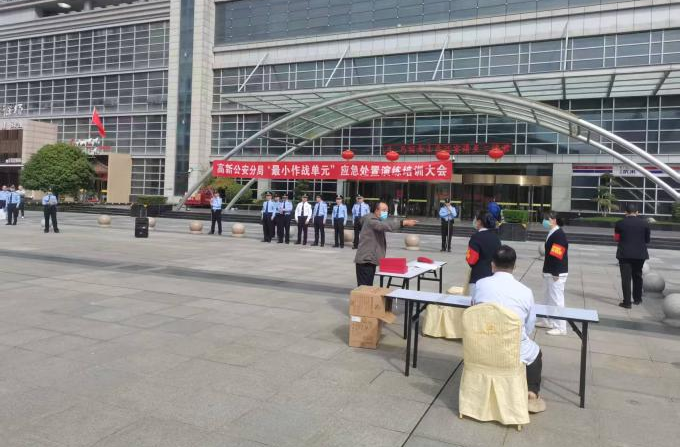 市公安局巡特警支队副支队长雷狄,市公安局治安支队副支队长李先水,高新区党工委委员、政法委书记、高新公安分局党委书记、局长高峰青,高新公安分局党委副书记,政委张三林,高新公安分局党委委员、副局长向贤宏、徐红旗出席活动,高新公安分局7个派出所、应急警组和人员密集场所等13个作战单元代表队参加培训。