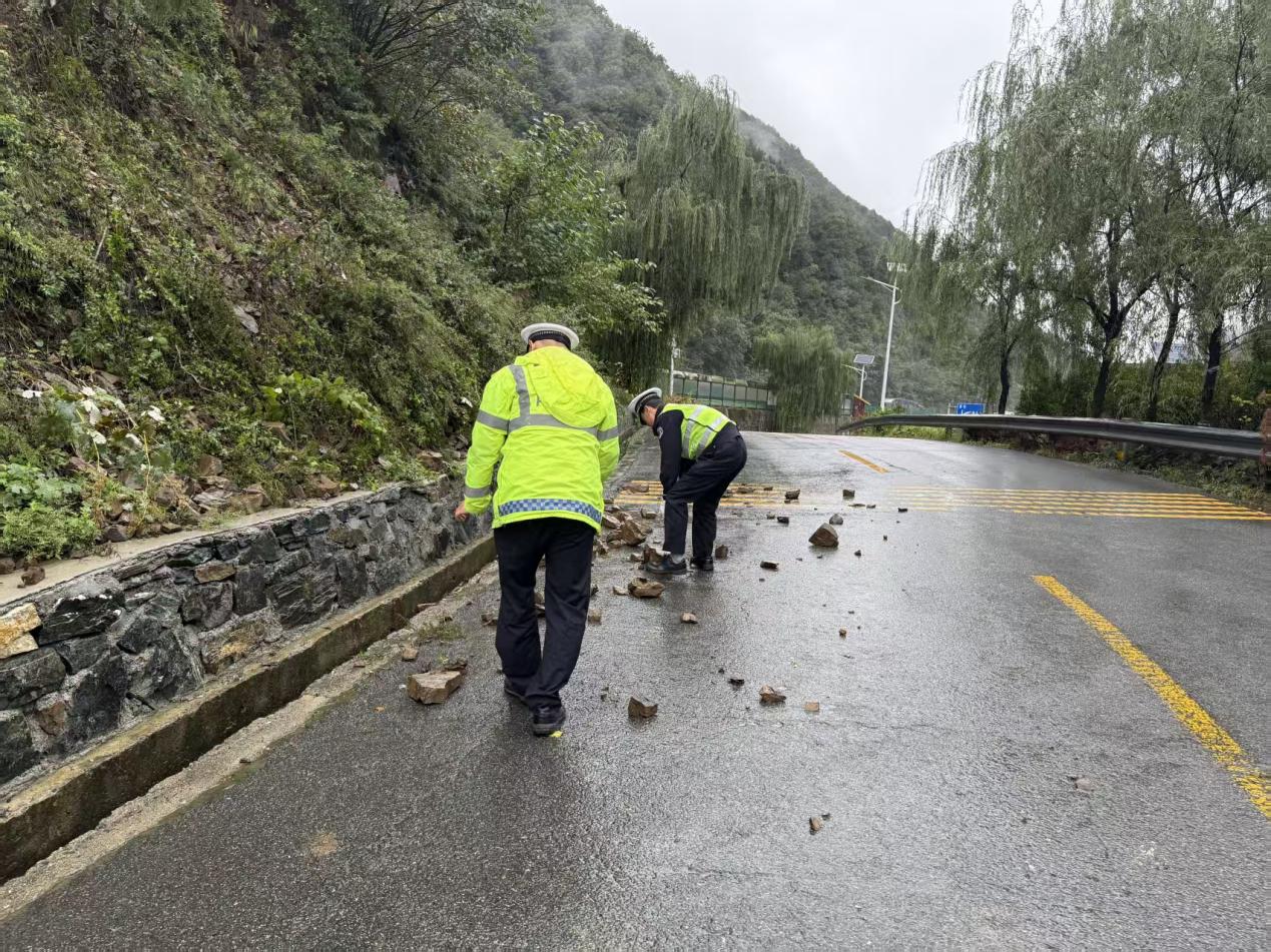 针对持续降雨可能带来的安全隐患,蓝田公安的民警们深入一线,开展全方位、地毯式的隐患排查工作。他们重点排查山区道路临水临崖路段,密切关注边坡地带的落石风险,发现险情立即处置。对积水较深、路况不明的路段,及时设置警示标志、实施交通管制,耐心引导车辆行人绕行。在隐患排查中,民警们不放过任何一个细节,遇到路面杂物、落石或倒伏树木,便徒手清理,全力打通“安全通道”。从治安隐患到交通危险,他们的眼睛同时盯着两个方面的问题,用实际行动筑牢假日安全防线。