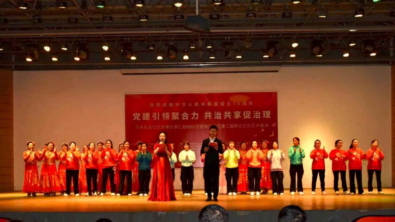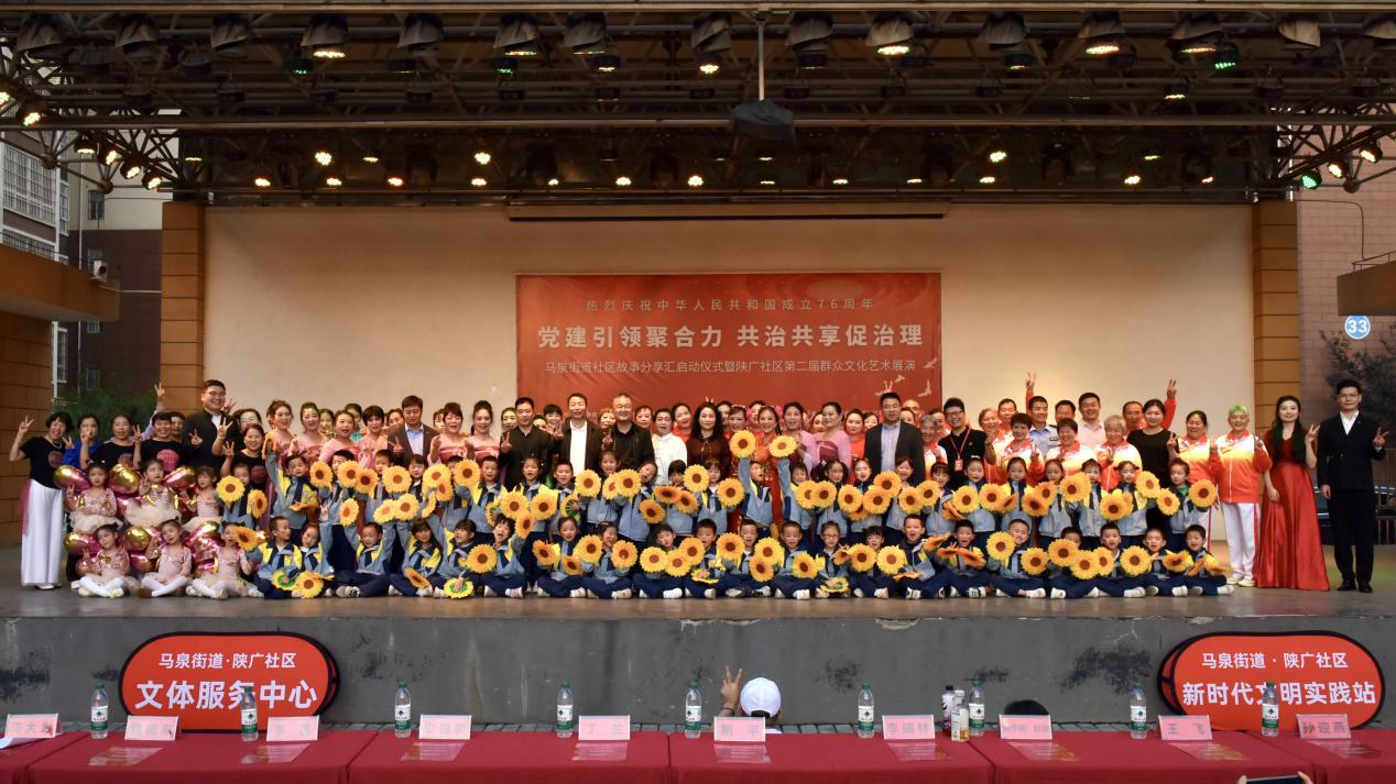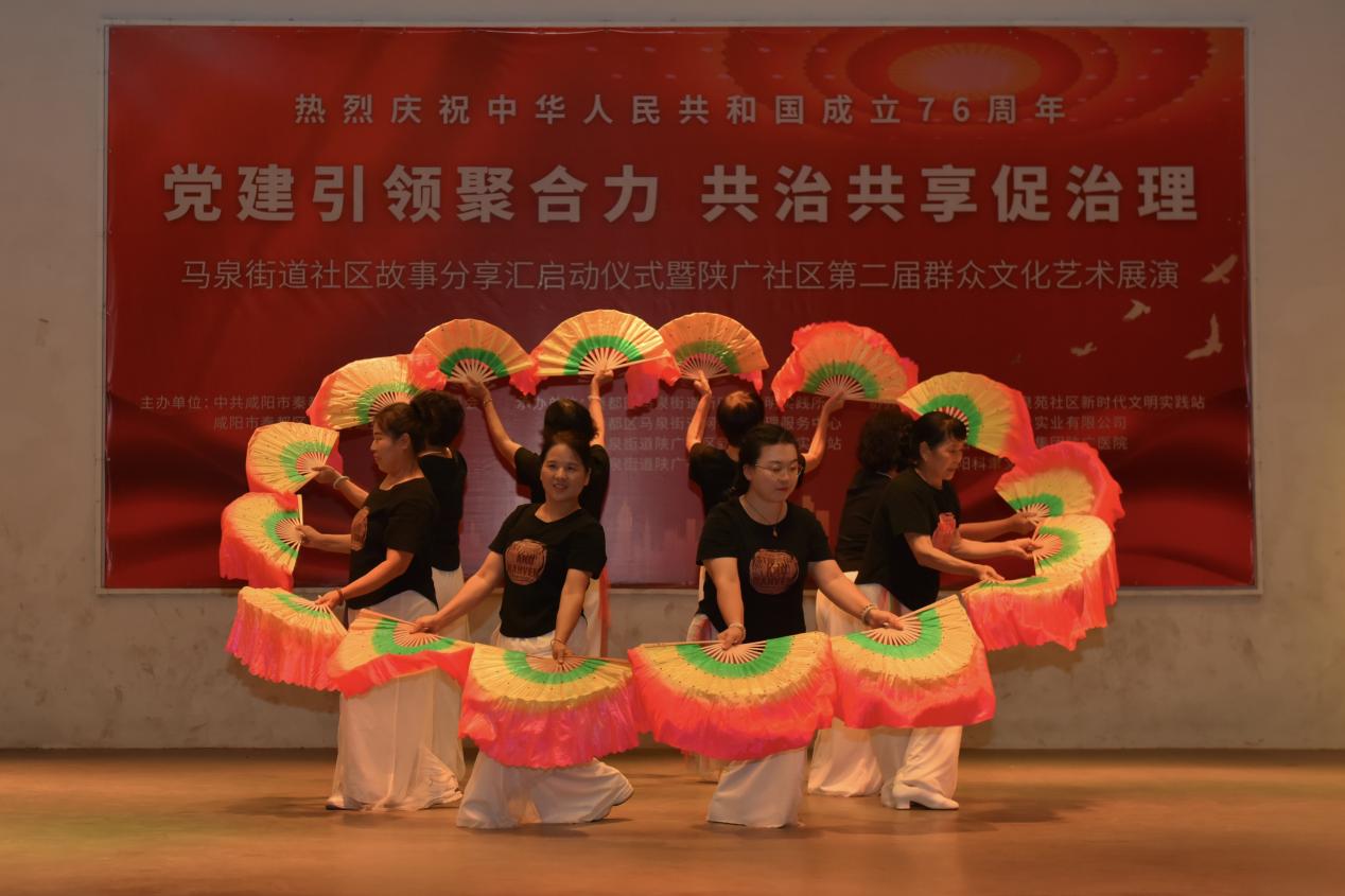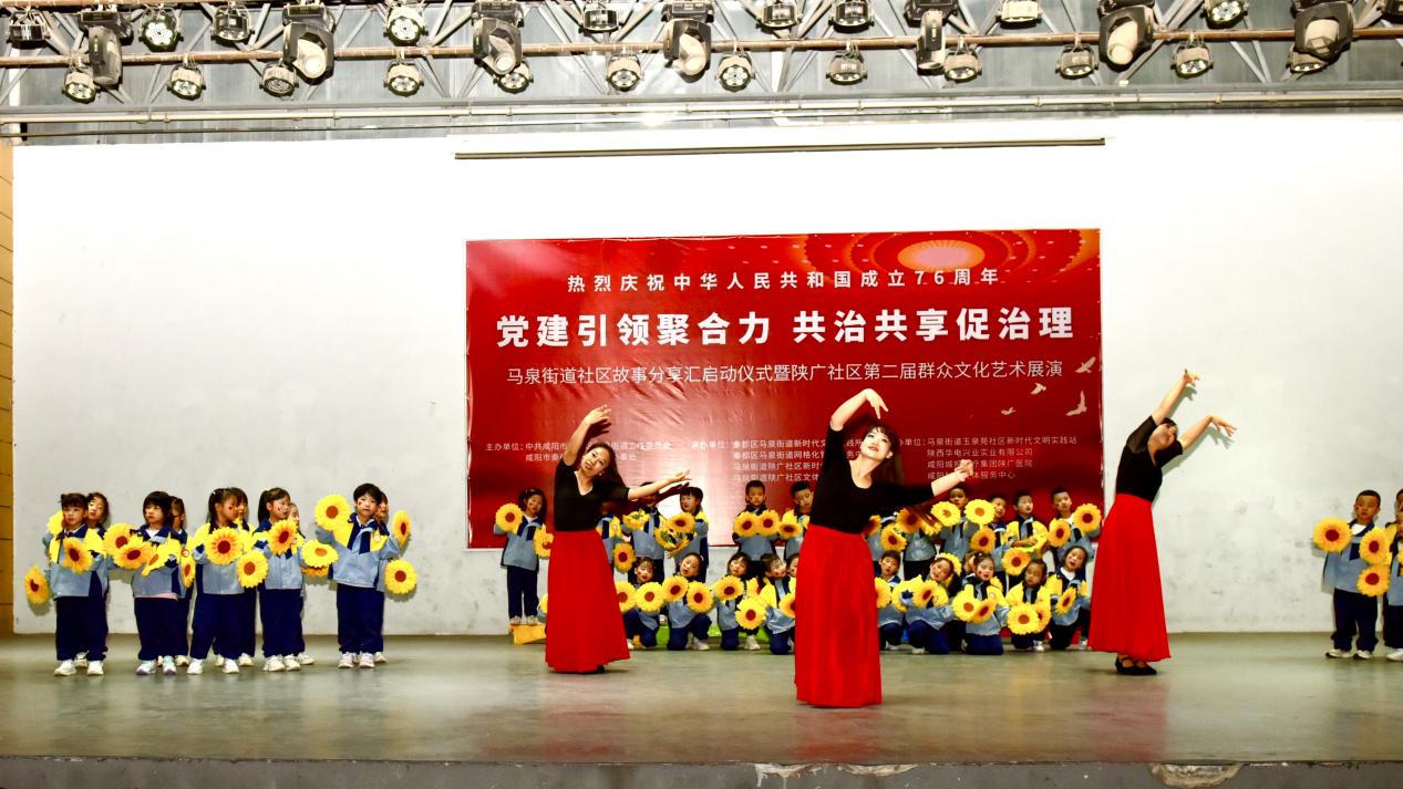 阳光讯(记者 赵小康 通讯员 翟佩娟 文/图)2025年9月29日傍晚,秦都区马泉街道陕广社区如意雅和小区灯光球场内红旗招展、鼓乐喧天。社区第二届“党建引领聚合力 共治共享促治理”群众文化艺术展演在此拉开帷幕。党员、群众、志愿者们通过宣讲、歌舞、曲艺等形式,展现基层治理成果,共庆新中国76华诞。