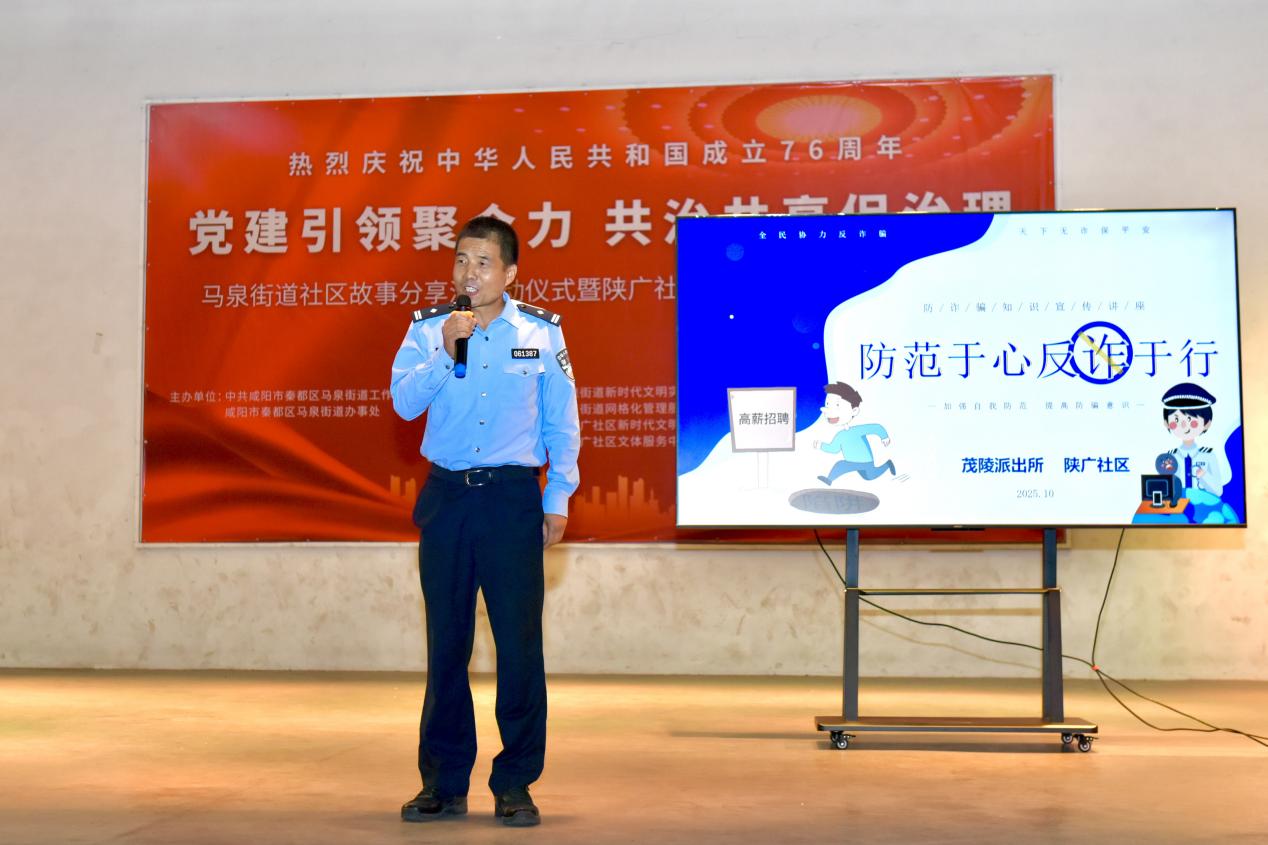 活动在舞龙队腾挪跳跃中拉开帷幕,象征着社区党建“红色引擎”的强劲动力。《平凡微光》宣讲中,老党员坚守初心、网格员24小时服务、居民邻里守望的故事打动全场,掌声印证了群众对共建共治的认可。如意幼儿园孩童唱响《童心映党徽》,家长记录幸福瞬间;玉泉苑社区夕阳舞蹈队演绎《中国美》,平均年龄超60岁的队员展现活力;茂陵派出所结合案例开展反诈宣讲,用方言拆解诈骗手法,以“不听、不信、不转账”口诀强化防范意识,实用又接地气。还有大鱼艺术的《小蜜蜂》、快乐英姿走秀队的《人间第一情》如意雅和物业的《我和我的祖国》等节目,拼出“党建引领、群众参与”的治理图景。志愿者“猫宁赵”分享的助老故事更是对友善互助、传递大爱的真诚诠释。养老服务中心的压轴《相亲相爱》传递着“社区是我家”理念,台下观众拍手和唱,笑意满溢幸福与笃定。