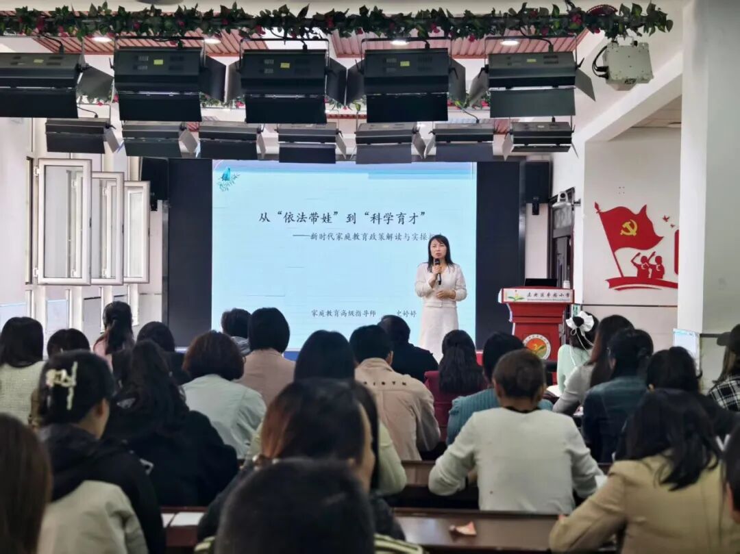 会议第一项,学校特别邀请未央区教育局史婷婷老师围绕从《“依法带娃”到“科学育才”》这一主题,结合具体案例,深度解读了新时代家庭教育政策和家庭教育法,为家长们的育儿之路指点迷津。