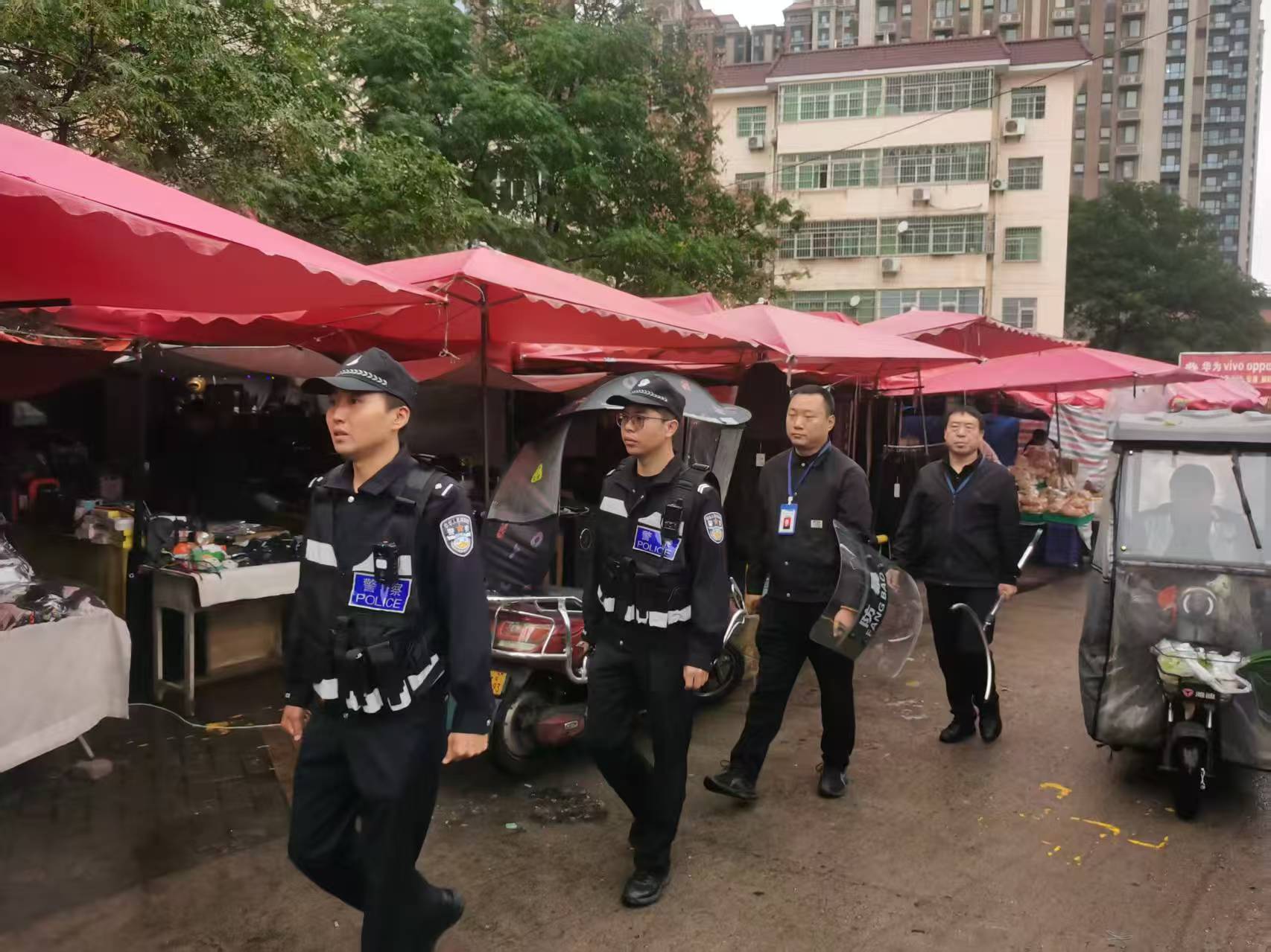 10月7日,连日阴雨稍有停歇,民警像往日一样,深入辖区开展节日期间各项安保工作。在西港农贸市场对最小应急单元进行点调,并联合在市场开展巡逻防控;在河堤路景区、在地铁口,排查停放车辆是否上锁完好;在辖区各小区,联合小区物业对安全设施进行检查。