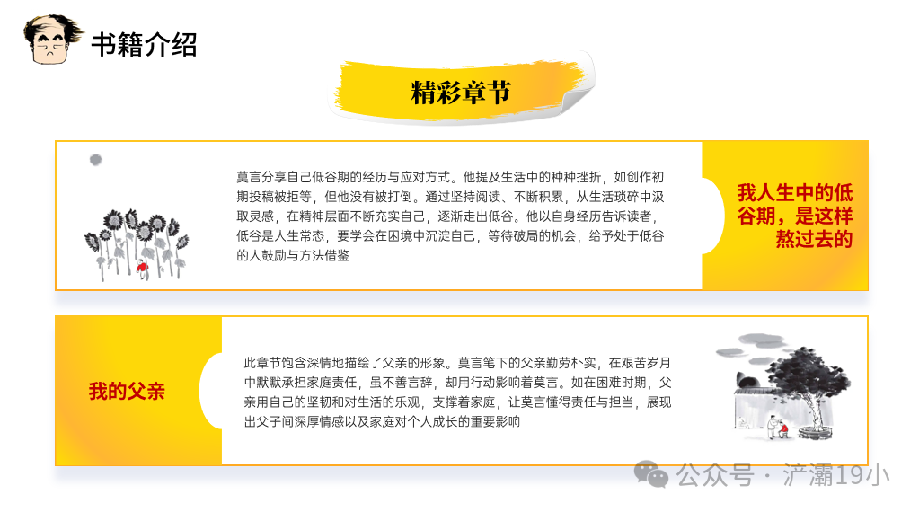 通过阅读这本书,我更加深刻地认识到了自己。莫言在书中坦诚地分享了他的成长经历,让我明白每个人都有自己的优点和不足。我们要学会正视自己的不足,发挥自己的优势,不断努力提升自己。只有这样,我们才能在人生的道路上走得更远。