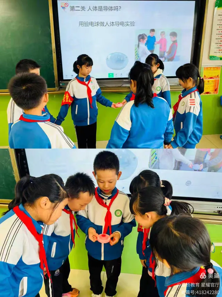 孩子们手拉手连成圈,握紧验电球的导电触点,“亮了!亮了!” 灯泡的微光刚闪,教室里响起一片惊叹,自己的身体居然能导电!