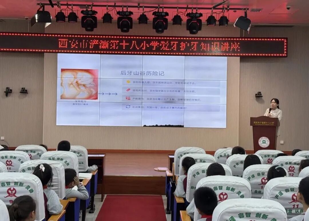 9月底,口腔科医护团队化身温柔又专业的“牙齿守护使者”,带着精心筹备的“牙牙探险记:窝沟封闭超能力”讲座走进西安市浐灞第十八小学,用孩子们喜闻乐见的方式,为他们筑起一道坚实的口腔健康防线。