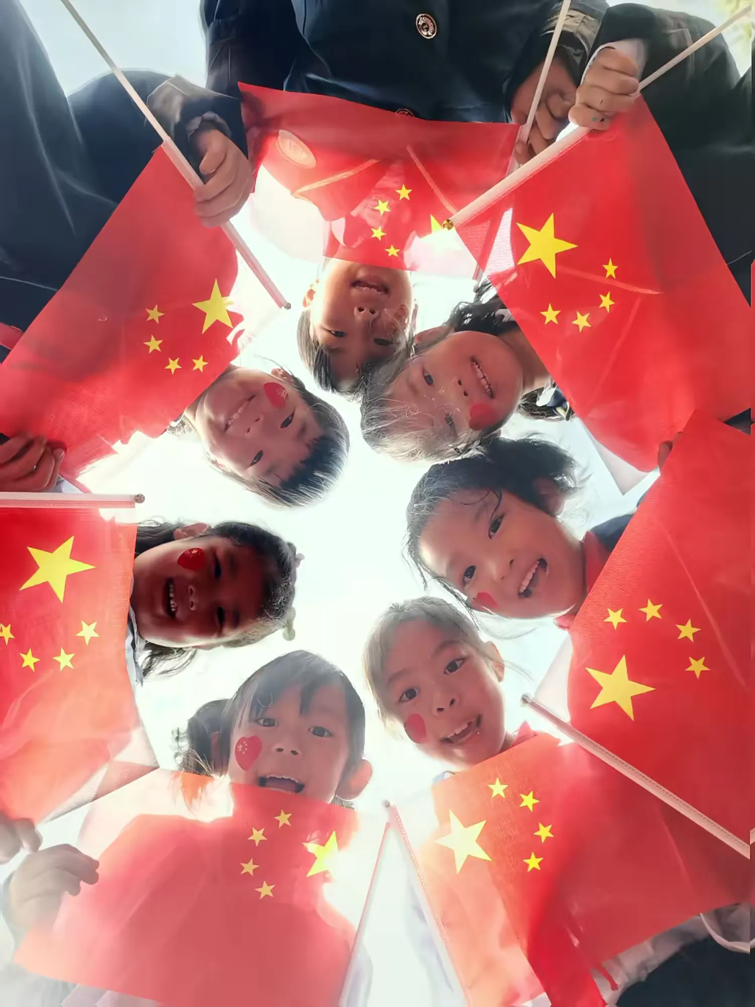 “我和国旗合影”活动成为校园里最耀眼的风景线。孩子们发挥无限创意,以多样姿态与国旗同框,一张张纯真的笑脸在鲜艳的五星红旗下绽放,定格下对祖国最真挚的热爱。