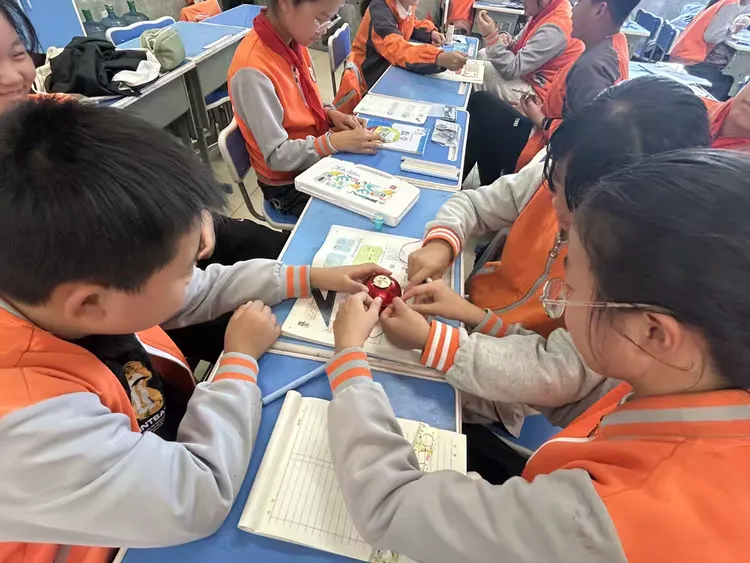 在小组合作环节,学生们用细绳和尺子探究圆的周长,对比不同圆的大小差异,直观感受“同圆或等圆中半径相等”的性质。整堂课氛围活跃,学生从“被动听”变为“主动探”,真正成为课堂的主人。