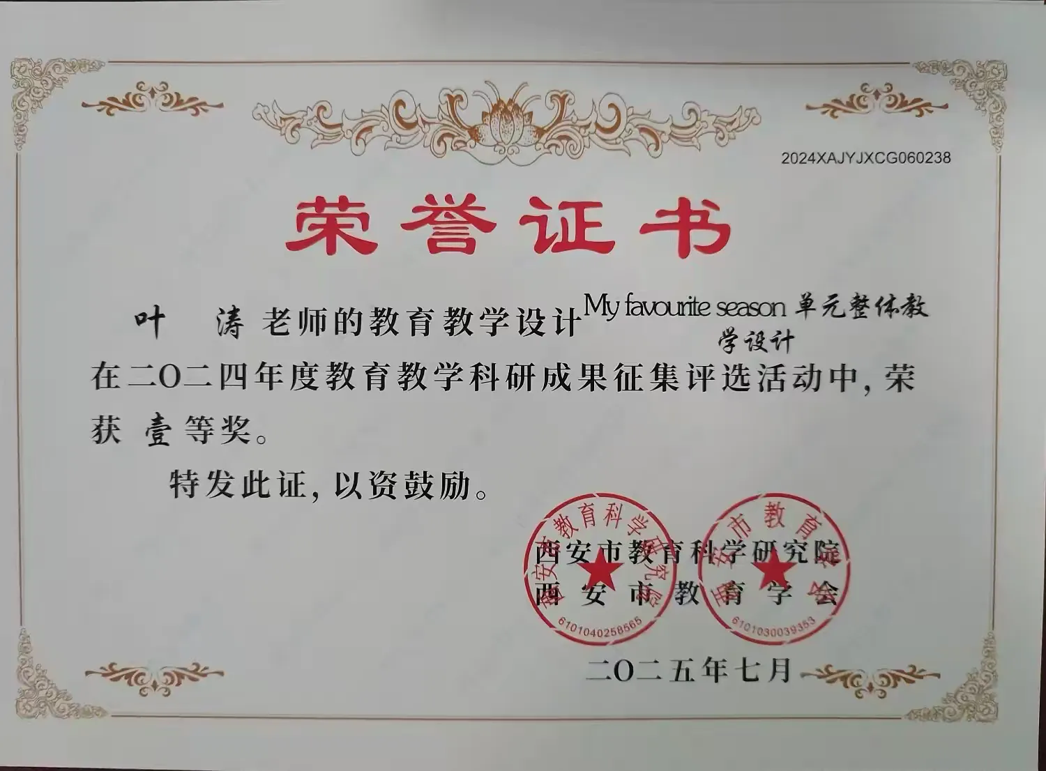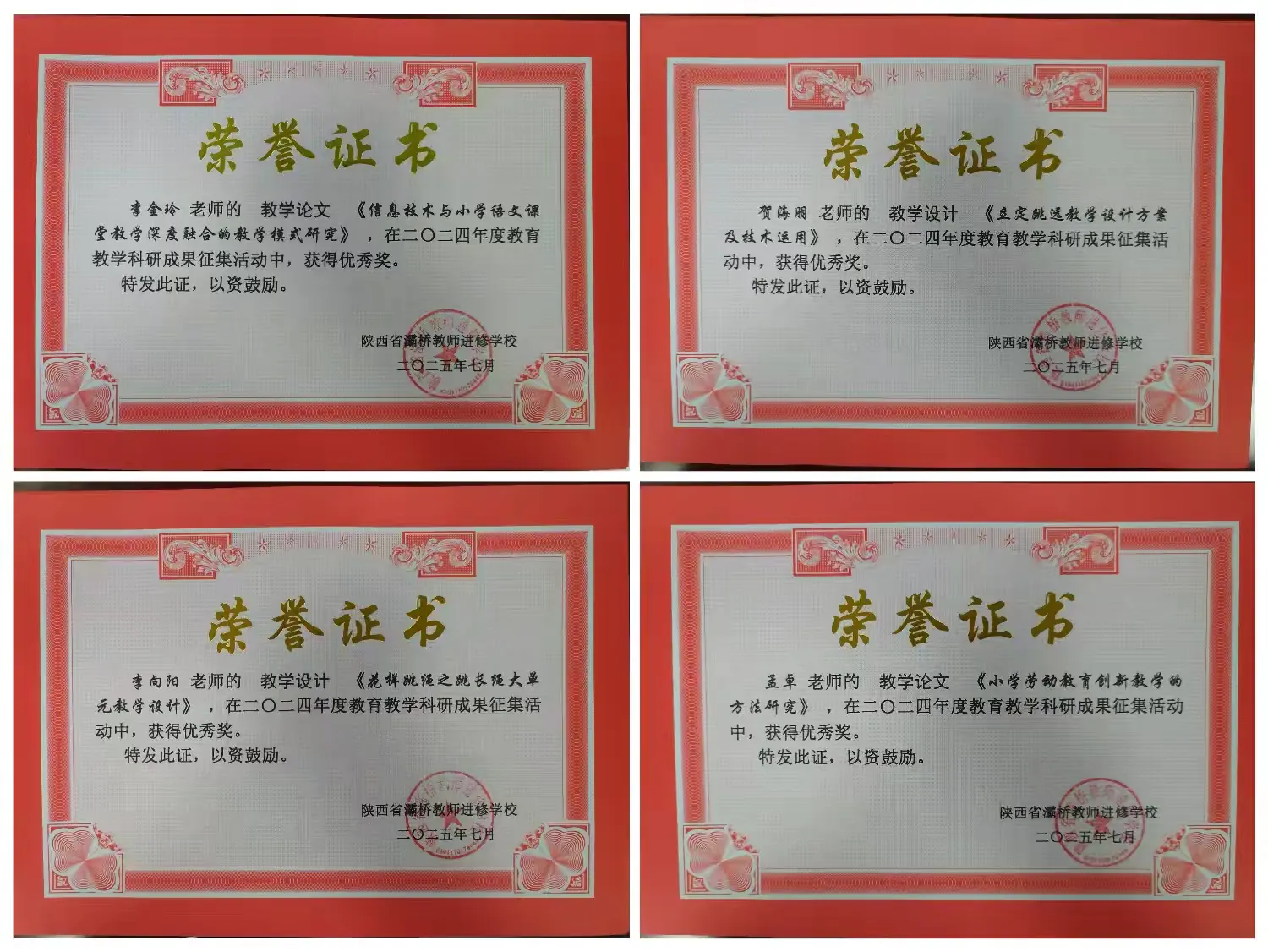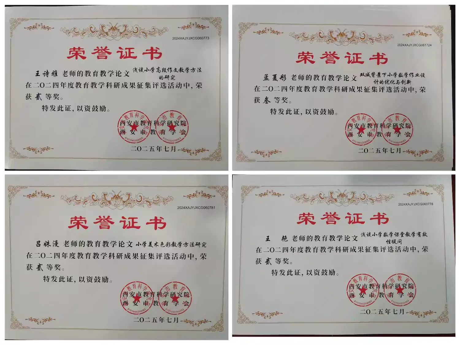 金秋结硕果,捷报踏歌来!在这个充满收获与喜悦的季节,西安市灞桥区席王中心小学再传佳音!在西安市教育科学研究院与西安市教育学会联合组织开展的2024学年度教育教学科研成果征集评选活动中喜获佳绩,共41人获奖。其中:5人荣获一等奖,12人荣获二等奖,18人荣获三等奖,6人荣获优秀奖!