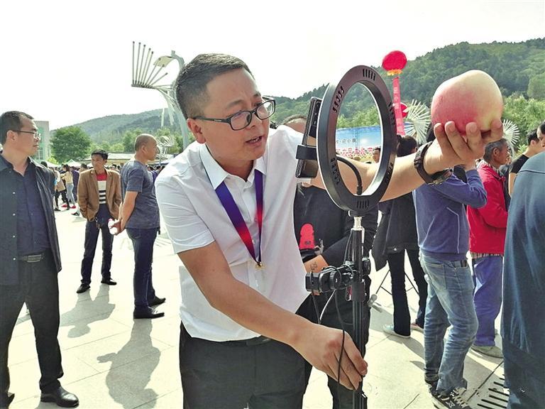 9月23日,富县2025年农民丰收节活动现场,工作人员直播带货,助力农产品销售(资料照片)。 通讯员 夏蓓蓓摄