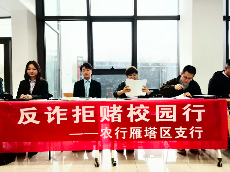 为强化在校学生反赌反诈和支付安全意识,提升其风险识别与防范能力,近日,中国农业银行西安雁塔区支行走进西安财经大学,以“反诈拒赌 安全支付”为主题开展“反诈拒赌校园行”宣传活动。活动通过专题宣讲、发放折页等多元形式,为青年学生筑起一道金融安全“防护网”。