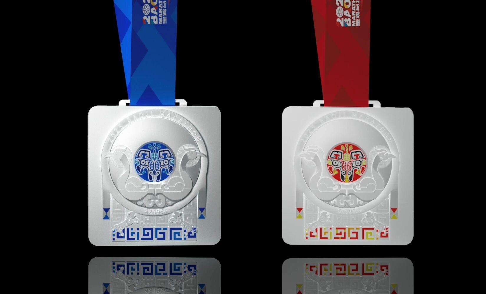 完赛奖牌以“天地人”三才合一、和谐共生为设计理念,采用“天圆地方”的经典格局,以国之重宝“何尊”为主体造型,同时巧妙融入国家级非物质文化遗产— 宝鸡社火马勺脸谱,打造出兼具文化内涵与收藏价值的赛事勋章。
