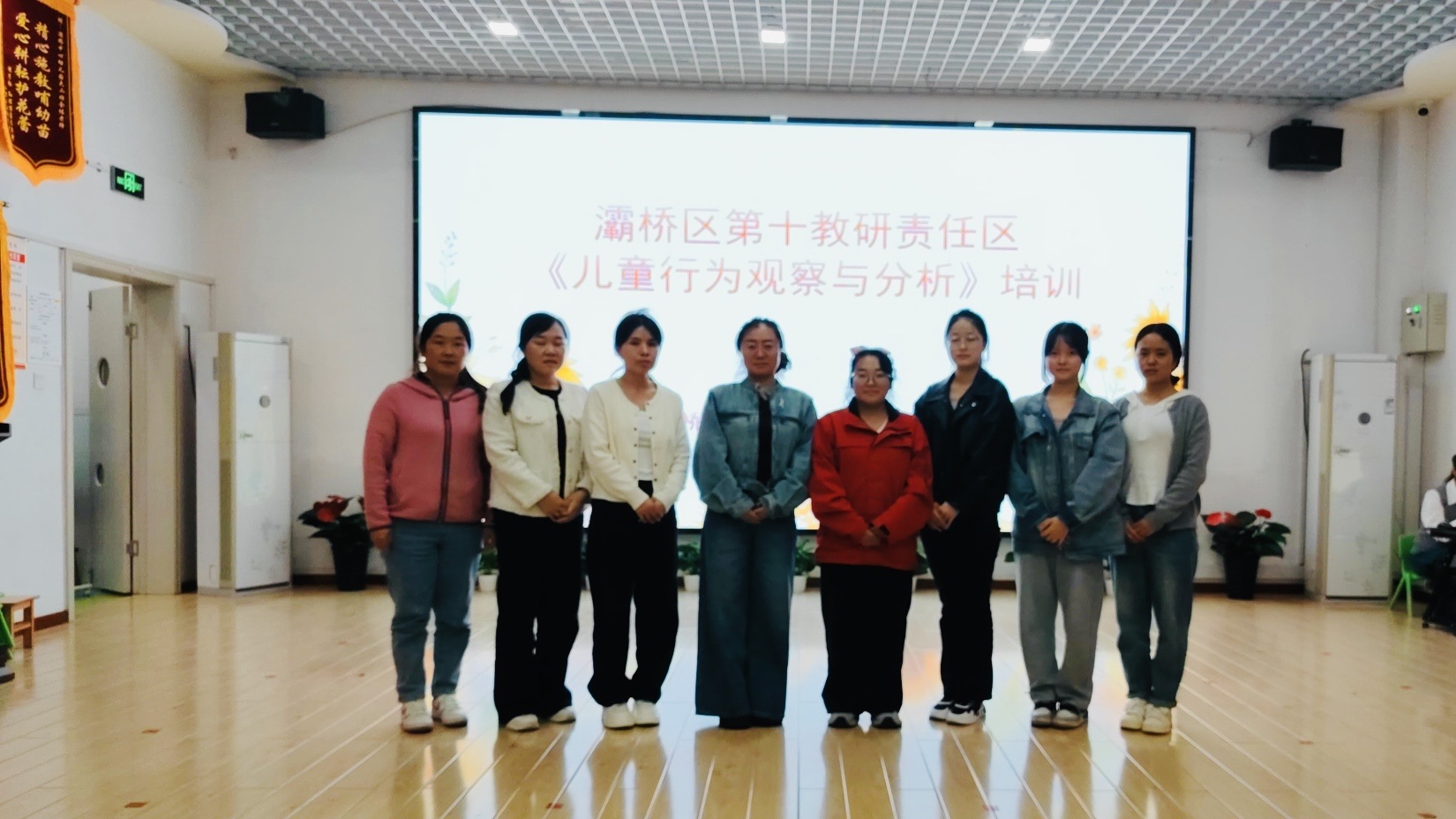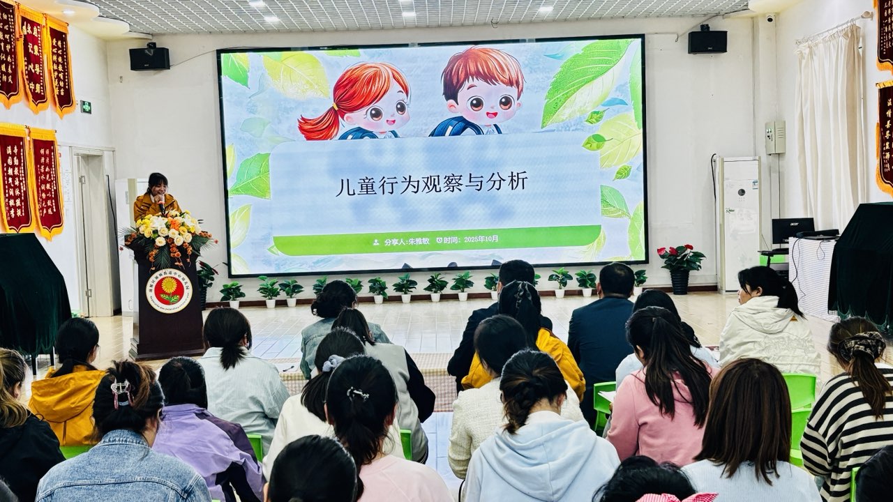 仪式后,灞桥街道中心幼儿园骨干教师朱雅敏开展了《儿童行为观察与分析》专题培训。朱老师紧扣《3-6岁儿童学习与发展指南》核心要求,结合教师技能大赛中的优秀案例,围绕如何科学观察儿童行为展开深入讲解,细致剖析儿童行为观察的要点与策略。
