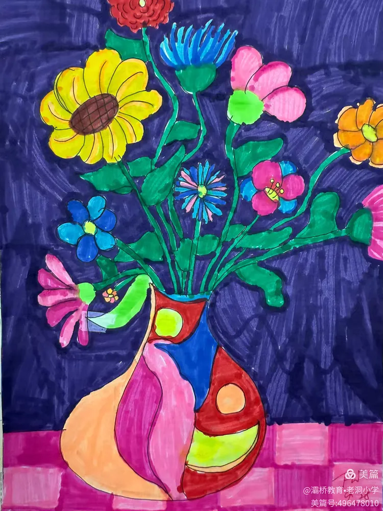 画布之上,主题回归经典——花瓶与花。然而,规则被重新定义:摒弃灰调,直取色相的本真。孩子们的目光在色环上巡弋,寻找着最具张力的色彩组合,一场关于纯粹的绘画实验就此启幕。