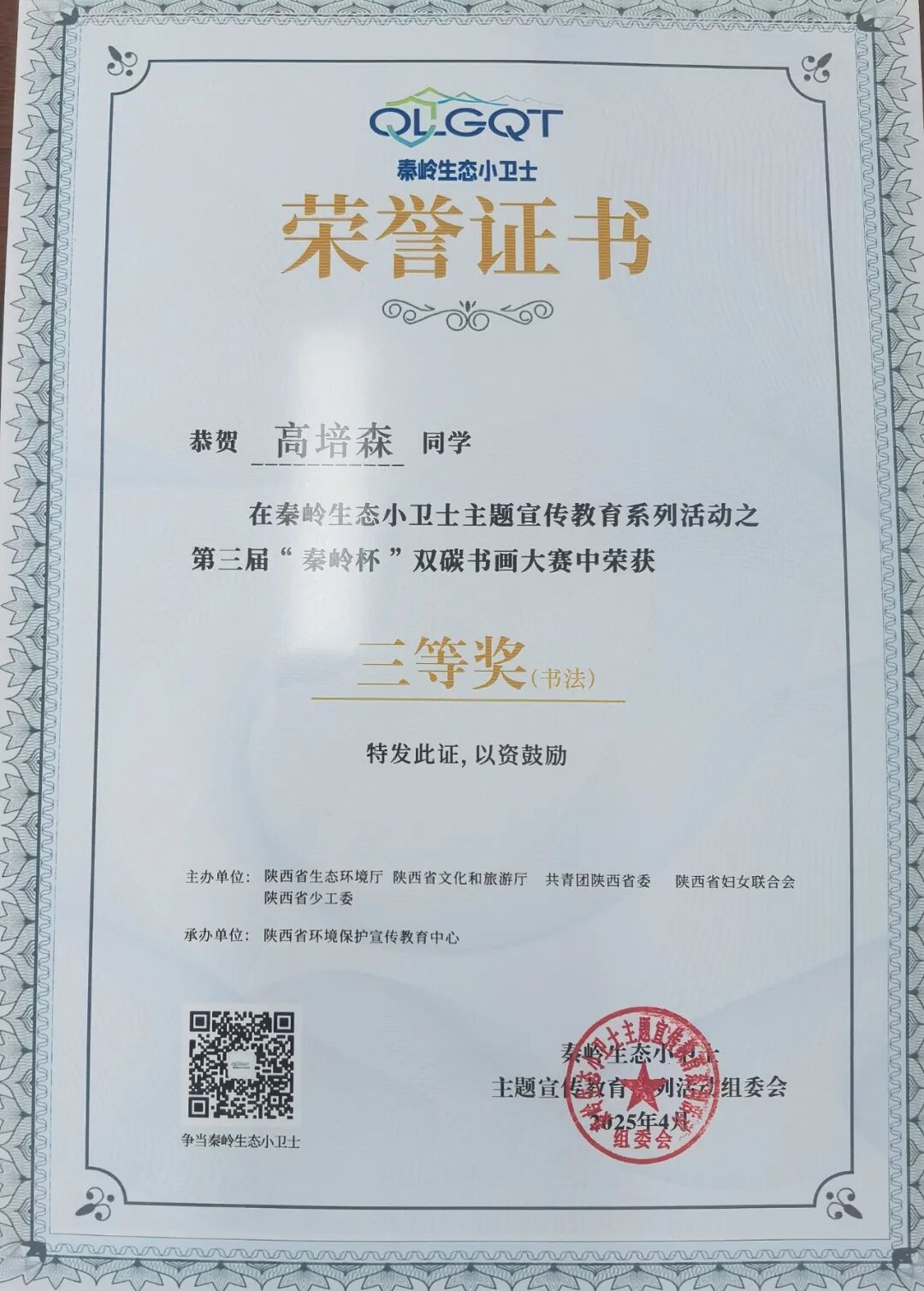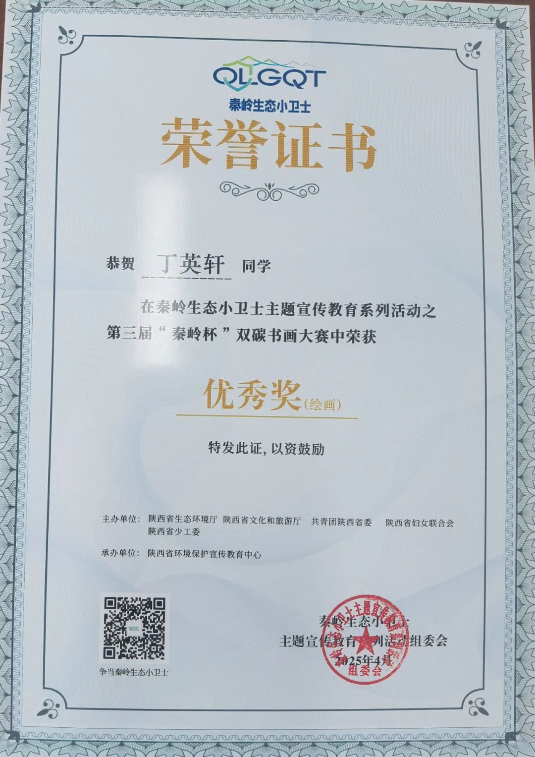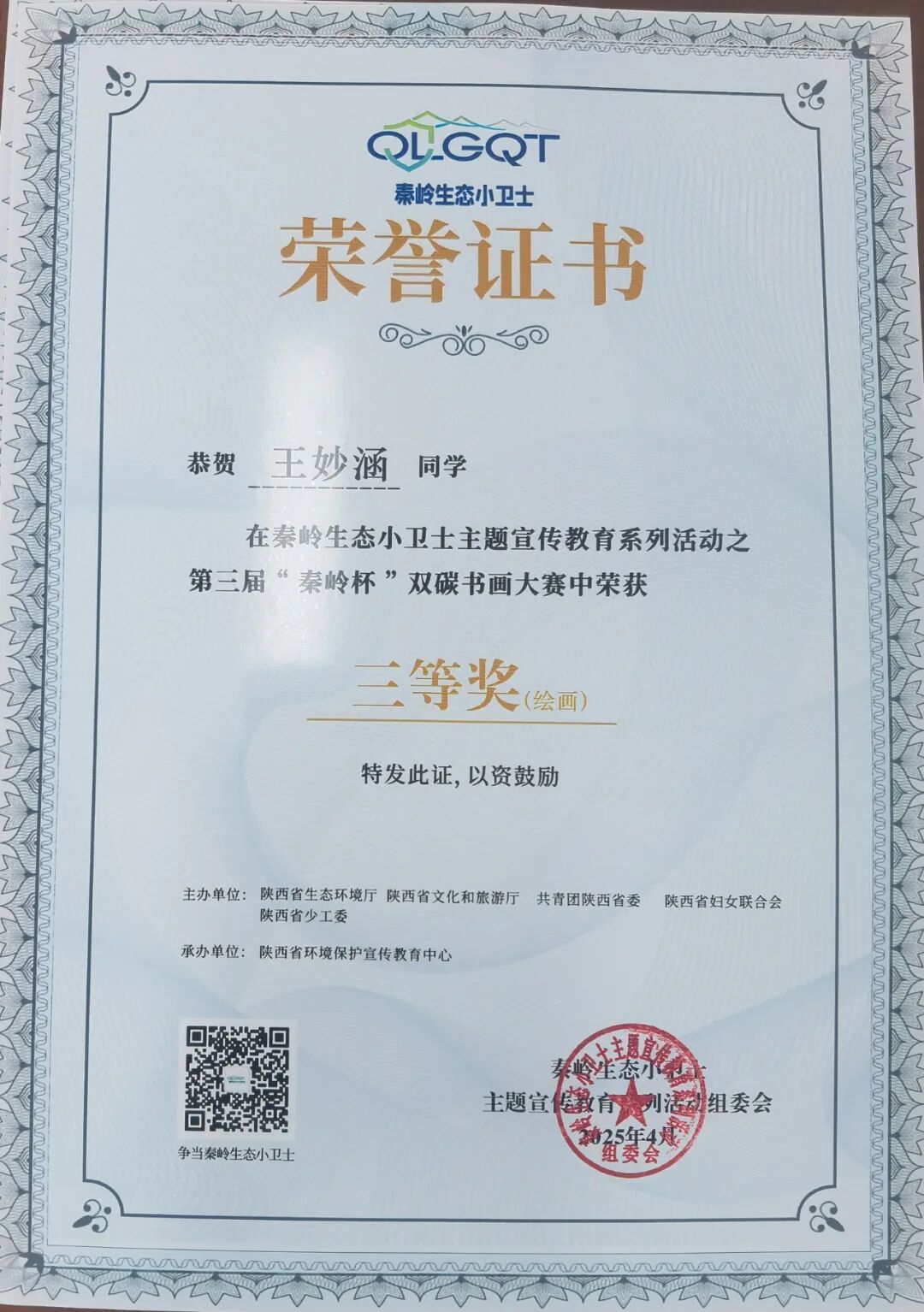 近日,在陕西省生态环境厅、陕西省文化和旅游厅、共青团陕西省委、陕西省妇女联合会、陕西省少工委等联合主办的秦岭生态小卫士主题宣传教育系列活动之第三届“秦岭杯”双碳书画大赛中,西安市未央区开元小学荣获多个奖项。