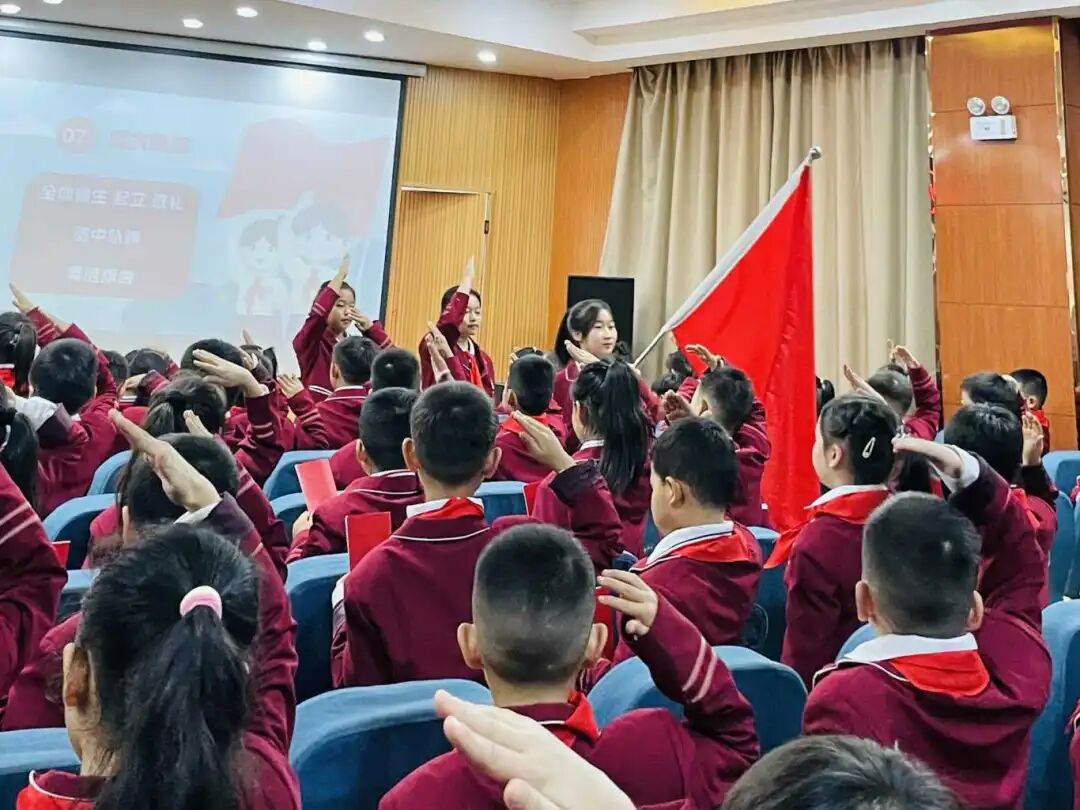 亲爱的队员们,当鲜艳的红领巾在胸前飘扬,你们便多了一份光荣的责任!这抹红,是信仰的颜色,更是成长的勋章。未来的日子里,既要做校园里的责任好少年,也要做家庭中的懂事小帮手,更要做心怀远方的追梦人。时刻记得:红领巾因你们的优秀而更闪亮,祖国因你们的成长而更有希望! (张斐斐 陈递君)