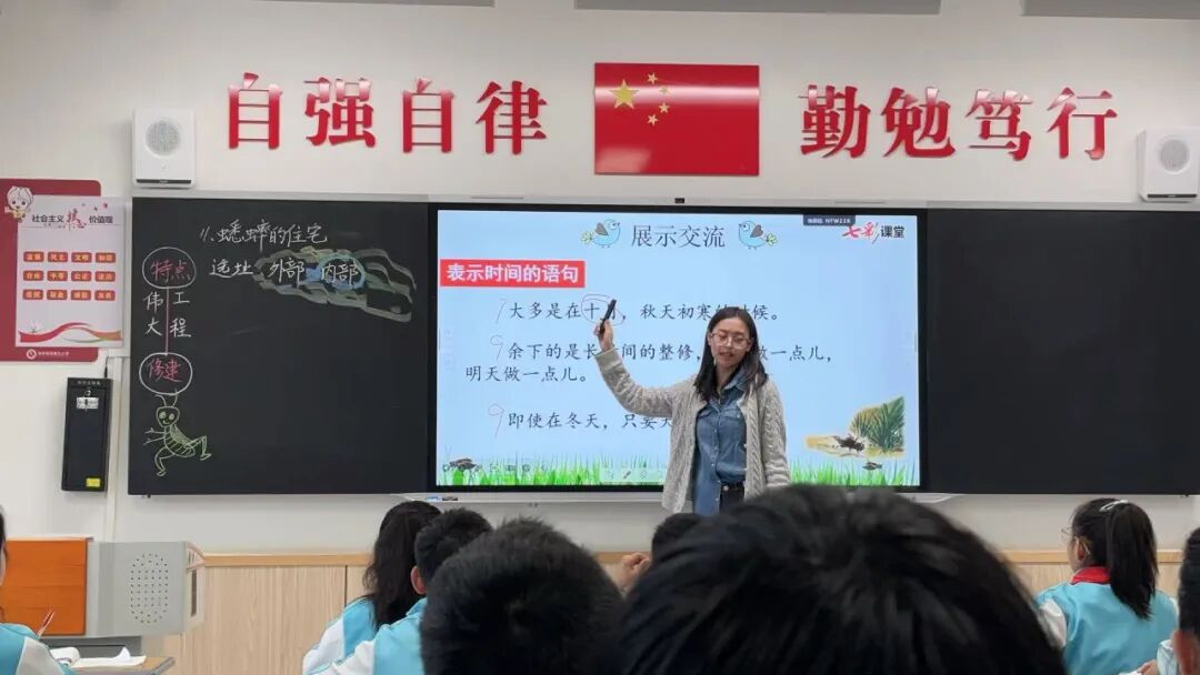 刘丹丹老师课堂上,一场别开生面的“昆虫建筑大师争霸赛”情境徐徐展开,“评审官进阶”主线贯穿全程,让学习充满沉浸感。学生从“初级评审官”起步,专注攻克昆虫相关字词关卡,夯实知识基础;随后升级为“勘察专家”,深入梳理蜜蜂巢、蚂蚁穴等昆虫住宅的结构与功能特点,培养观察分析能力;最终进阶为“特级评审官”,结合前期积累完成终审陈述,输出学习成果。