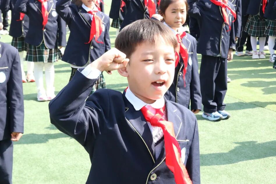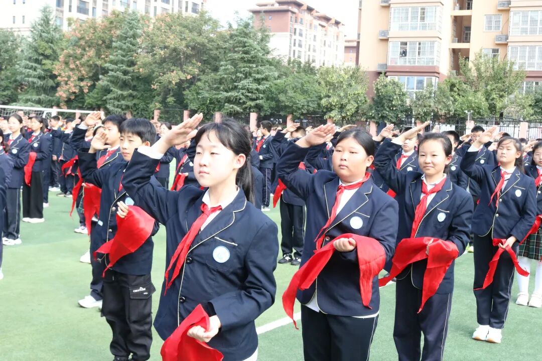 随后,在大队长杜晨菲的带领下,新老队员高举右拳庄严宣誓:“我是中国少年先锋队队员,我在队旗下宣誓,我热爱中国共产党,热爱祖国,热爱人民,好好学习,好好锻炼,准备着:为共产主义事业贡献力量!”誓言铿锵,响彻校园,成为少年们成长路上的重要印记。