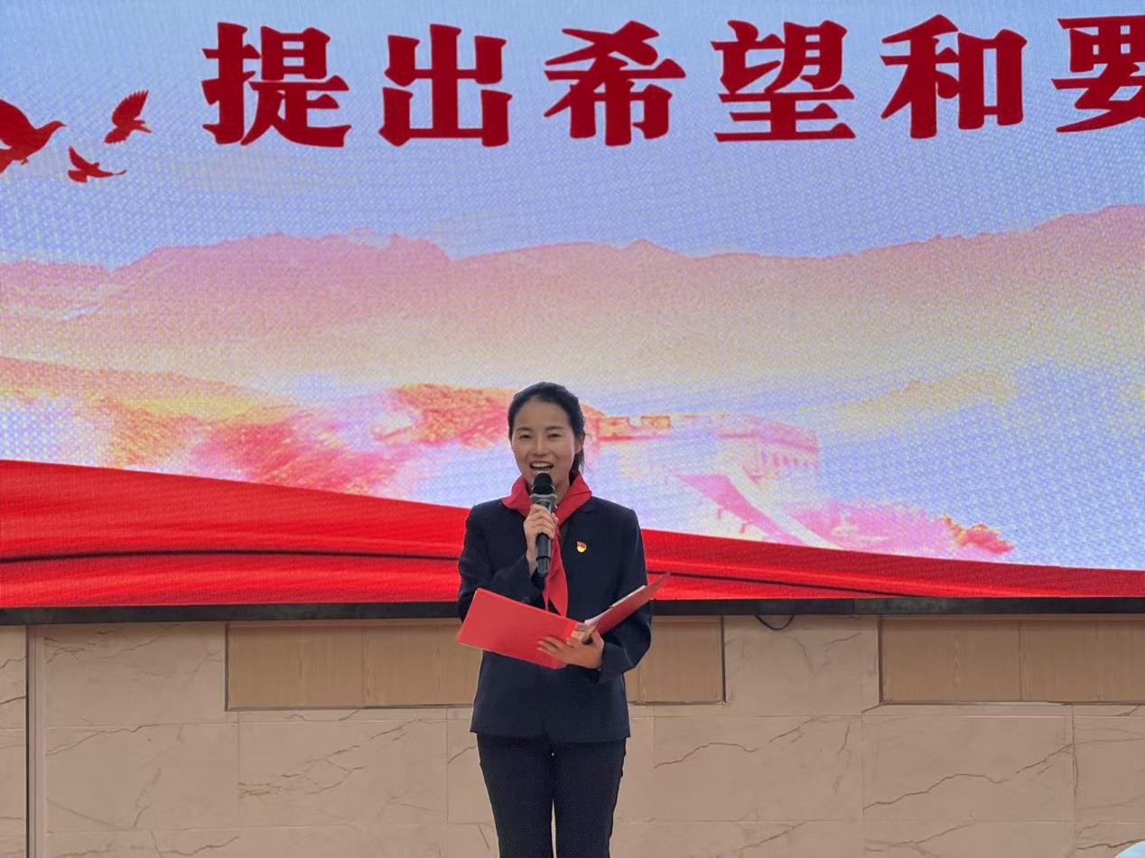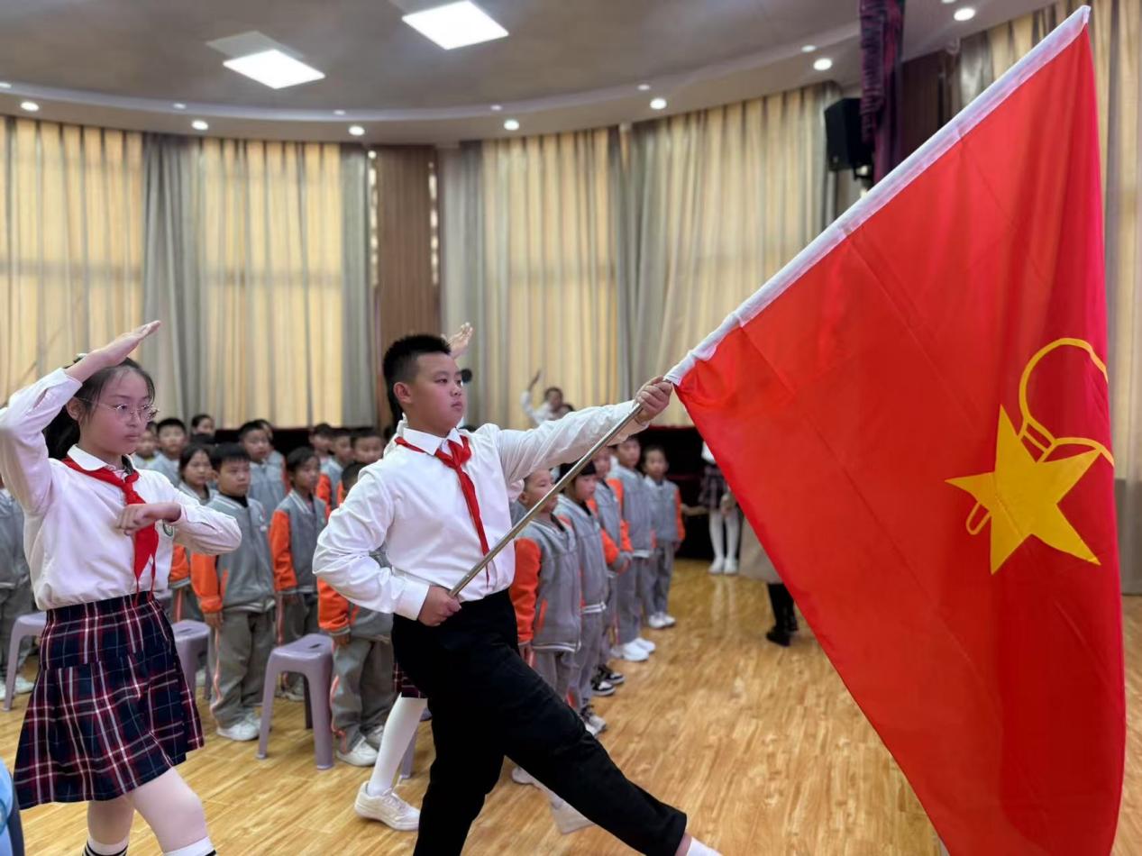 报告厅内,即将入队的二年级新队员身着整洁校服,稚嫩的脸庞上写满期待与崇敬,宛如等待检阅的小卫士。当《出旗曲》激昂的旋律划破寂静,少先队旗手与护旗手们身姿挺拔,迈着整齐有力的步伐护送队旗前行。全体师生目光紧紧追随那面鲜红的旗帜,红色的种子在孩子们心中悄然扎根。