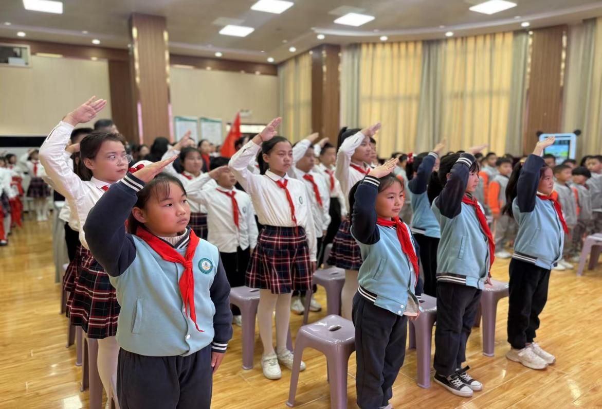 “我们是共产主义接班人,继承革命先辈的光荣传统……” 熟悉的旋律在厅内回荡,全体队员昂首挺胸,用洪亮的歌声诠释对少先队的热爱。歌声里既有新时代少年的蓬勃朝气,更有传承红色基因的坚定信念,将 “听党话、跟党走” 的种子深深植入心田。