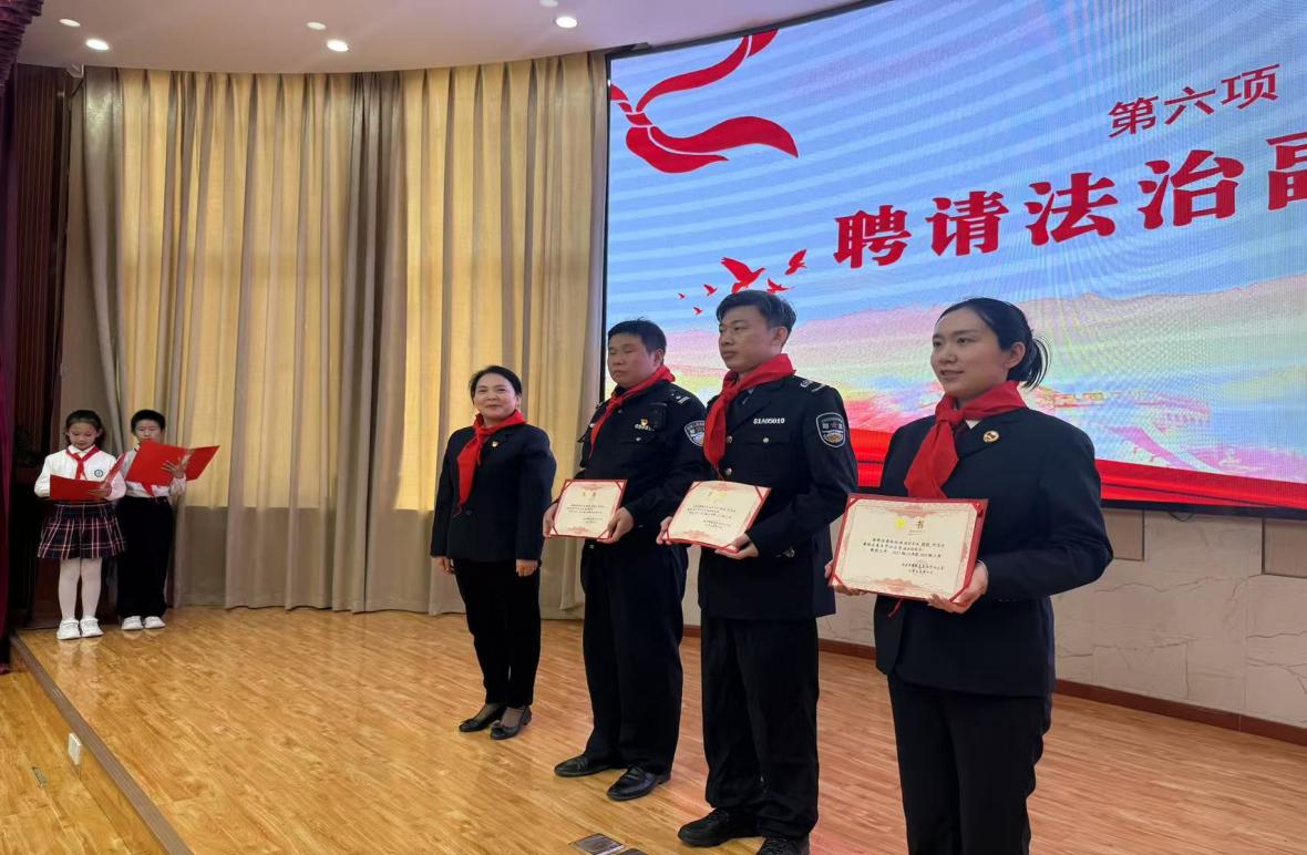 为在校园与法治实践之间构筑起一座坚实的桥梁,旨在护航队员、守护成长,学校特聘任灞桥检察院魏颖同志、灞桥区司法局干部梁磊同志担任惠王中心小学法治副校长,聘任洪庆派出所民警答菲凡同志任惠王中心小学法治辅导员。