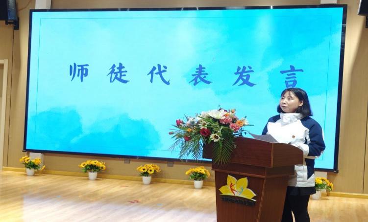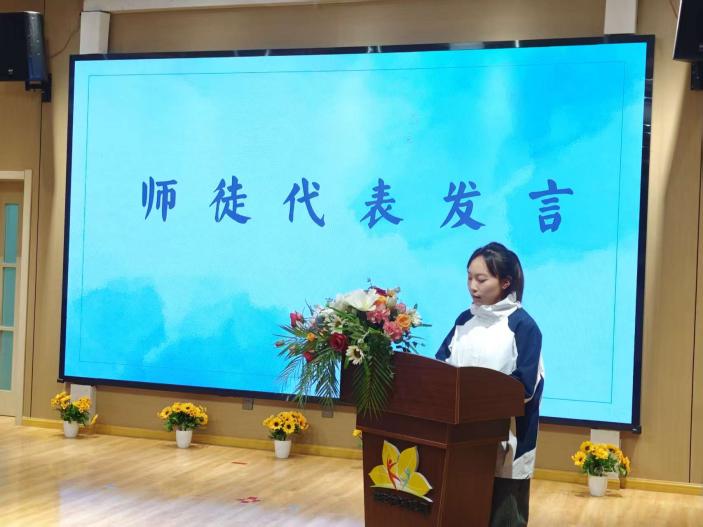 第五项,徒弟代表张依雯老师发言。她表示将虚心向师傅请教,用心学、潜心悟、尽心行,从师傅身上汲取丰富的知识和经验,更好地促进自身专业水平地提升。