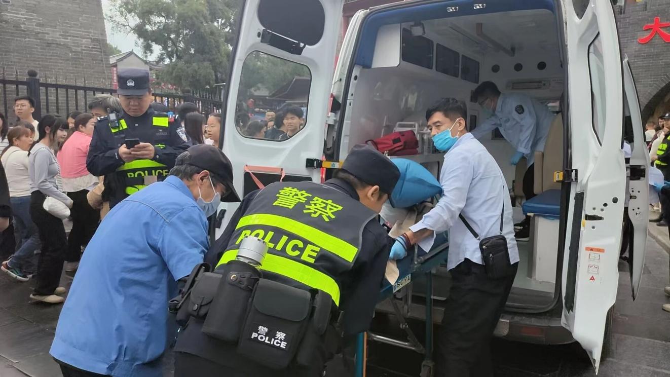 “警察同志,我心脏不舒服,喘不上气”,10月2日中午,鼓楼景区一名来自山西的游客向公安莲湖分局的民警求助,执勤民警立即通过对讲机呼叫增援,同时搀扶游客坐下,在询问相关情况后,一方面迅速联系120,一方面划定安全区域并购买含糖饮料,在高效的协作下,游客症状逐渐好转,被送上救护车的时候仍旧紧紧拉着民警的手。