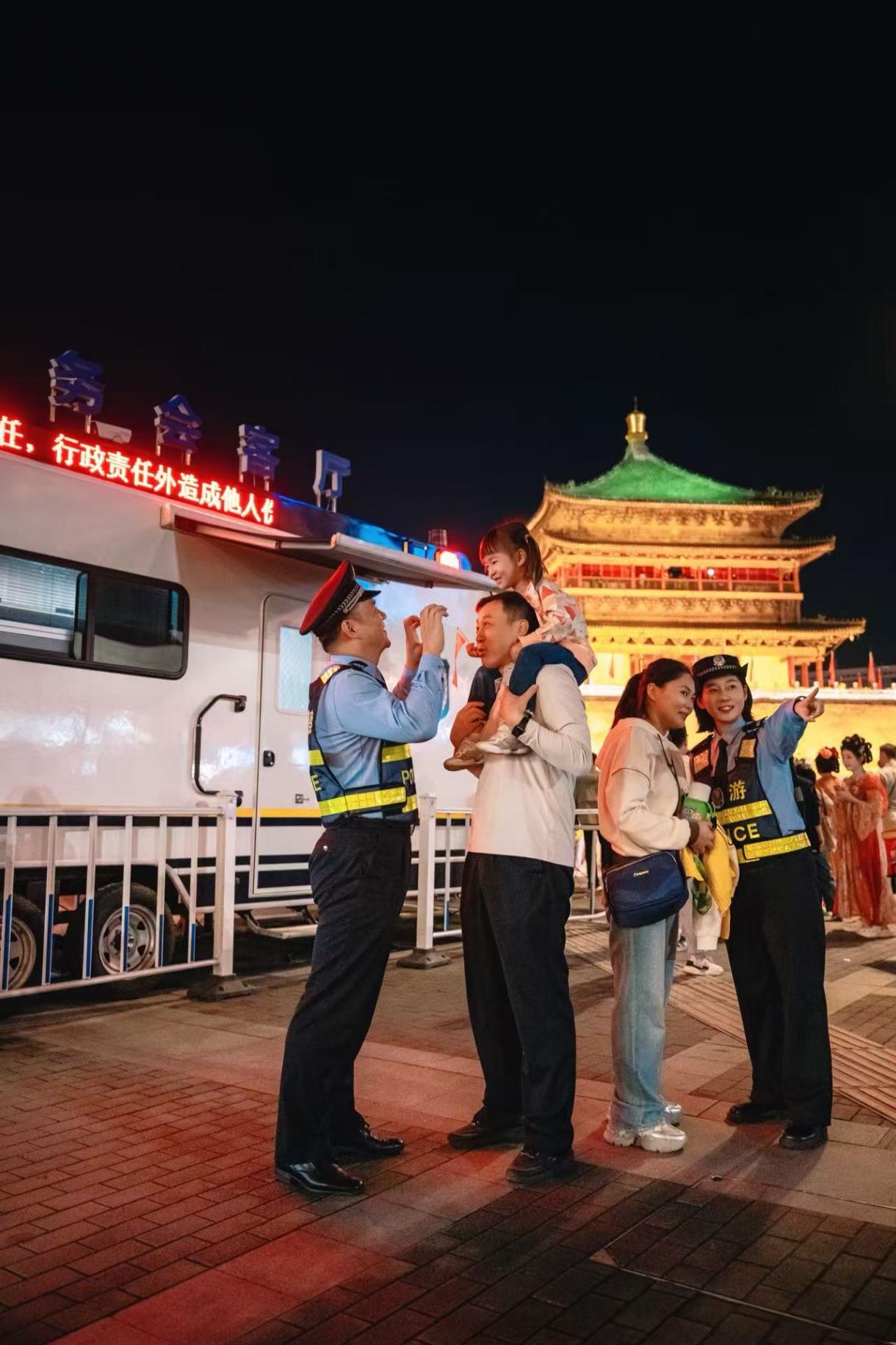 “今年双节期间,我们根据客流潮汐规律、景区闭园时间、实时天气变化、游客打卡需求等多种情况综合研判,按照‘靠前一步、主动作为’的要求,最大限度地把警力摆到案件高发、防范薄弱、游客需要的重点部位、重点时段上,让‘见警察、见警灯、见警车’成为我们假期旅游安保工作的新常态,不管什么时间、什么地方都要让游客感受到百分之百的安全感!”西安市公安局治安支队旅游管理中队中队长潘保山长介绍到。