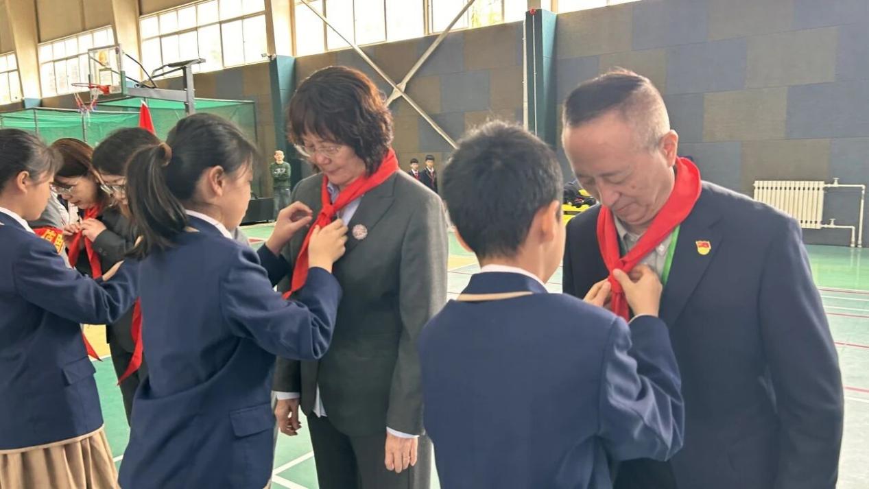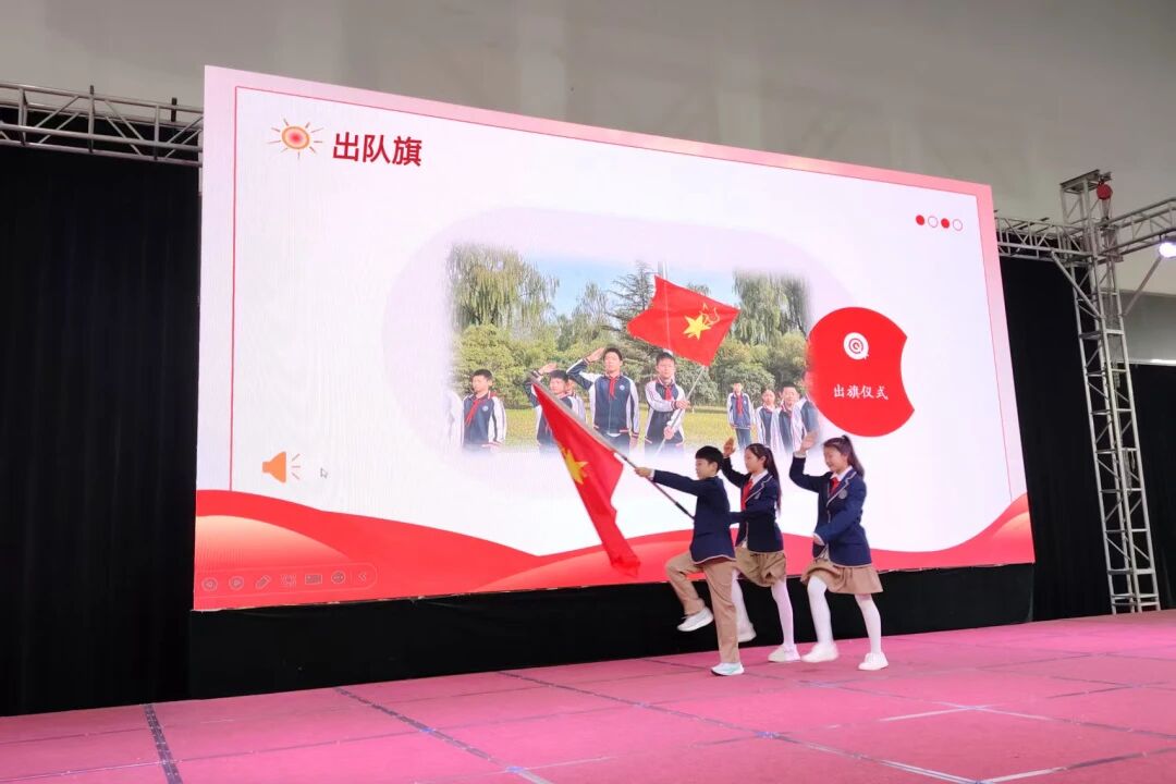 活动在激昂的《红旗颂》中拉开帷幕。少先队员们为到场领导与嘉宾佩戴上鲜艳的红领巾,以纯真的敬意迎接属于自己的节日。随后,队旗飘扬,队歌嘹亮,《中国少年先锋队队歌》响彻校园,展现了新时代少先队员昂扬向上的精神风貌。
