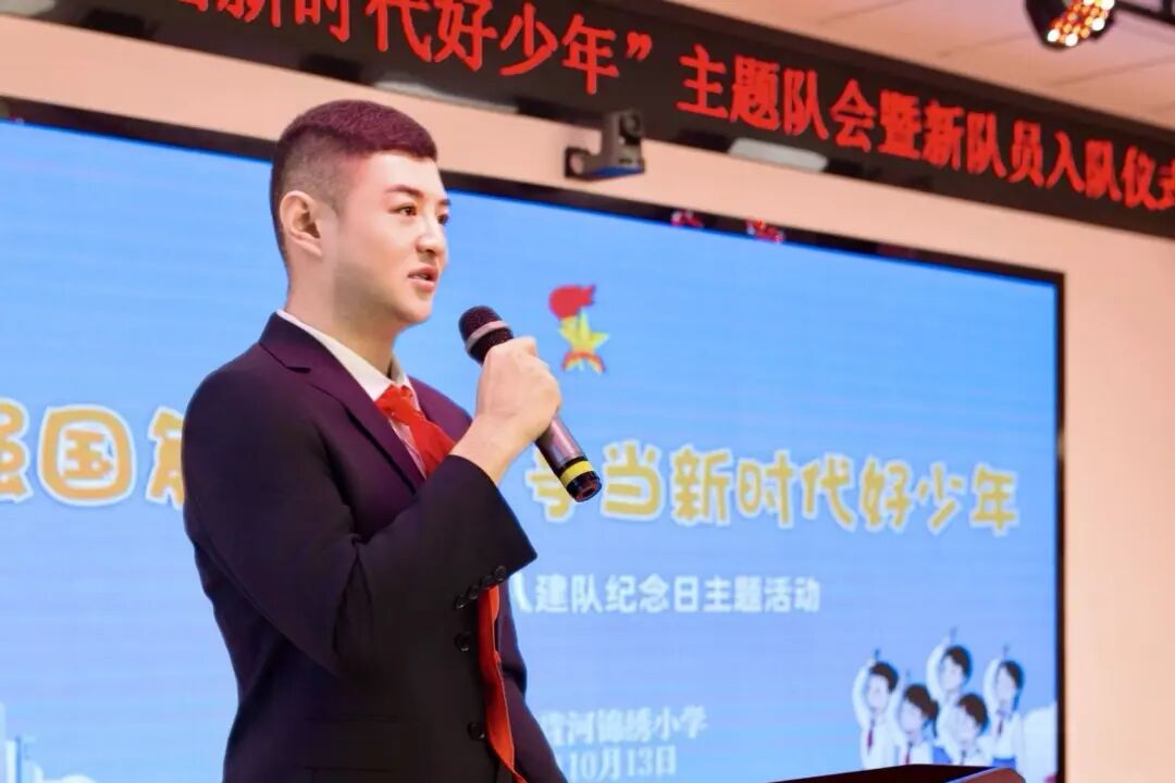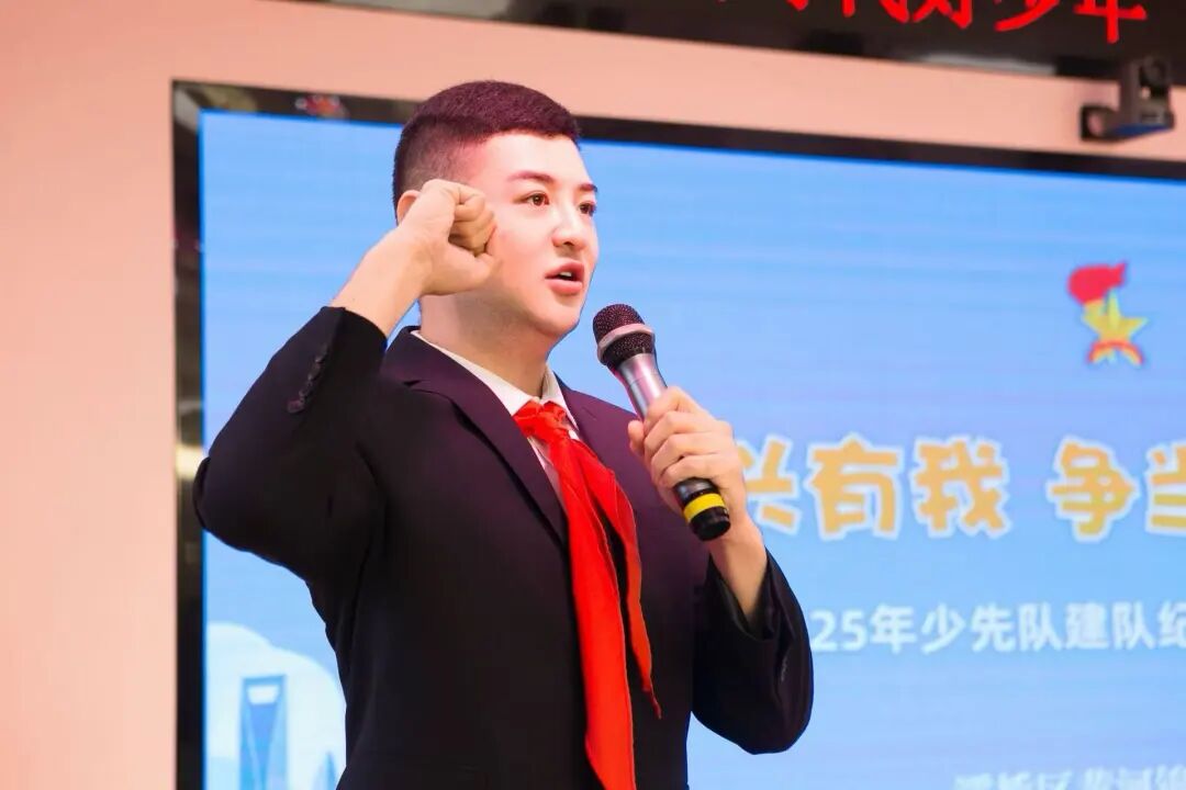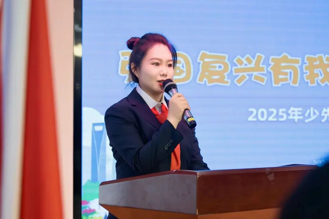 灞桥区黄河锦绣小学大队辅导员白森老师向全体新队员提出殷切期望。白主任的话语如明灯般指引方向,为新队员们的红色成长征程注入力量。他勉励全体新队员:要在勤学善思中锤炼本领,在实践磨砺中增长才干,始终让红领巾在胸前骄傲飘扬,让红色信仰在心中牢牢扎根。