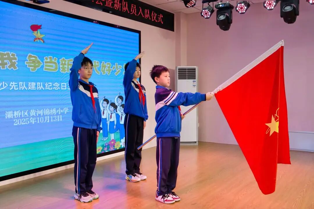 本次建队日入队仪式虽已圆满落幕,但新老队员践行“强国复兴有我”的红色成长征程才刚刚启航。愿灞桥区黄河锦绣小学的每一位少先队员,都能以红领巾为荣光、以队旗为指引,胸怀“强国复兴”远大志向,以“新时代好少年”的标准脚踏实地拼搏,在新时代的阳光下茁壮成长;不负韶华时光、不负时代重托、不负党和人民的殷切期望,不负“少先队员”这一光荣称号,不负胸前象征使命的鲜艳队旗!