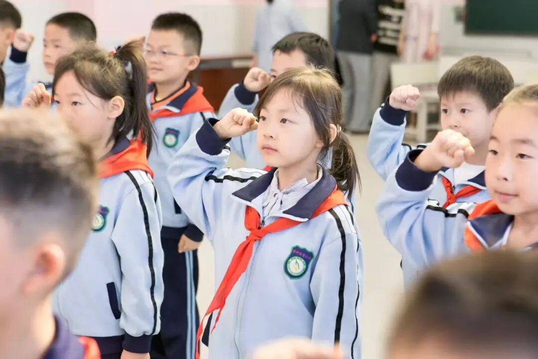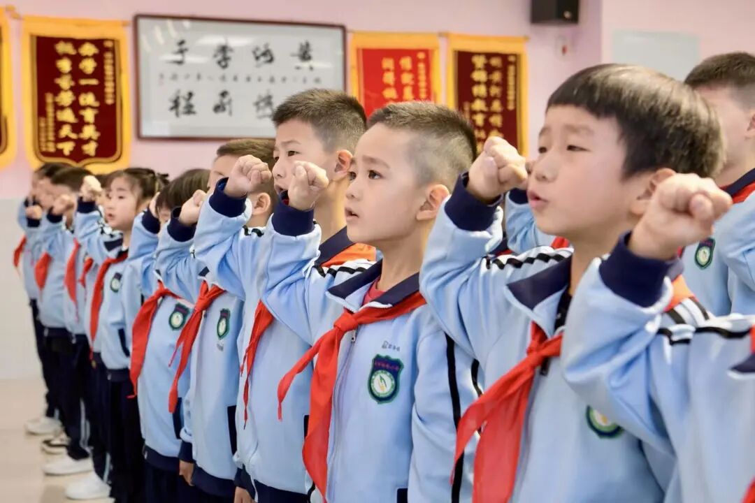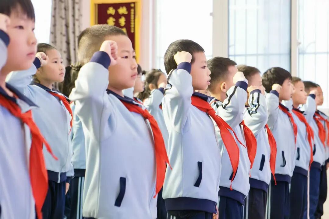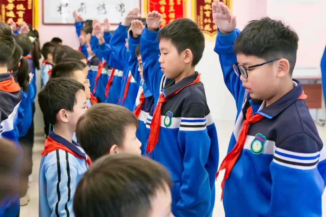 稚嫩的嗓音承载真挚信念,朴实的话语道出新队员的初心:从今日起,以少先队员的标准严格要求自己,争做有理想、敢担当、能吃苦、肯奋斗的新时代好少年。请队旗见证,大家必将以实际行动为少先队旗增光、为红领巾添彩。