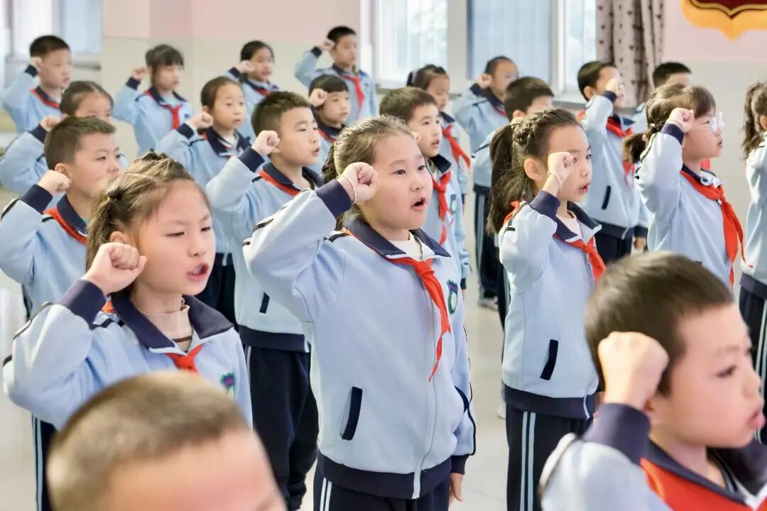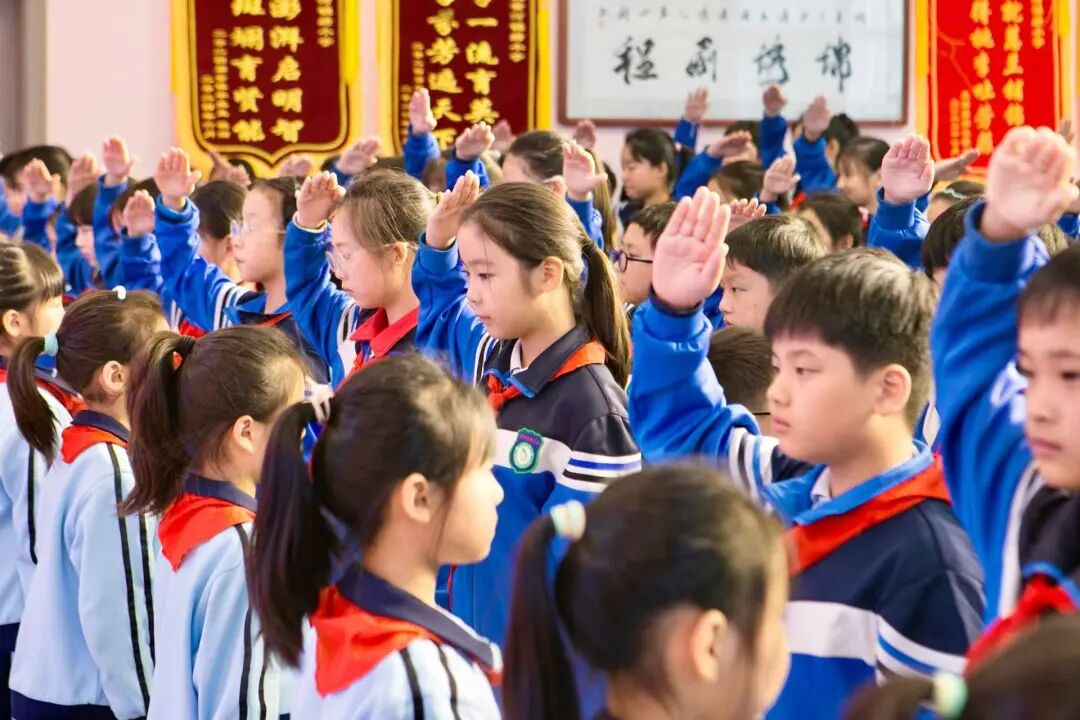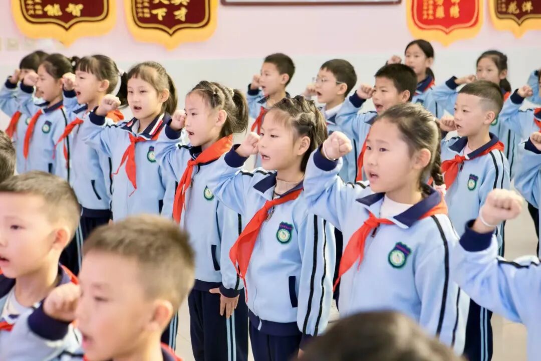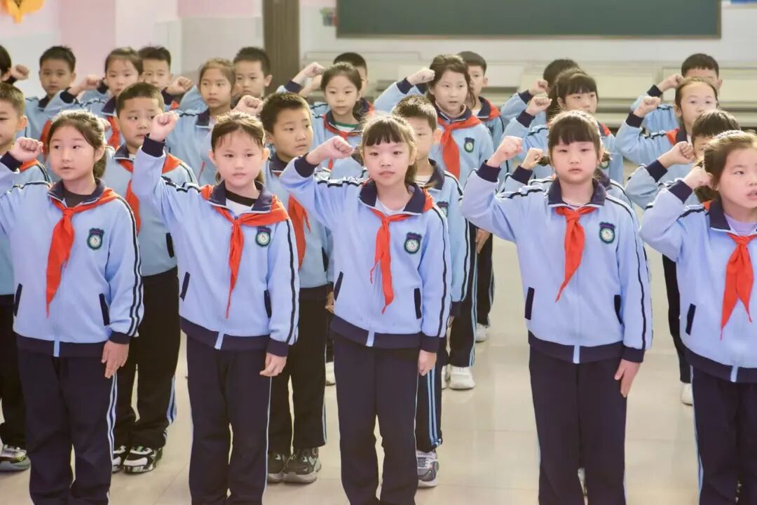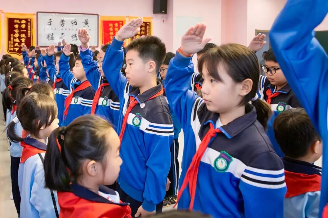 稚嫩的嗓音承载真挚信念,朴实的话语道出新队员的初心:从今日起,以少先队员的标准严格要求自己,争做有理想、敢担当、能吃苦、肯奋斗的新时代好少年。请队旗见证,大家必将以实际行动为少先队旗增光、为红领巾添彩。