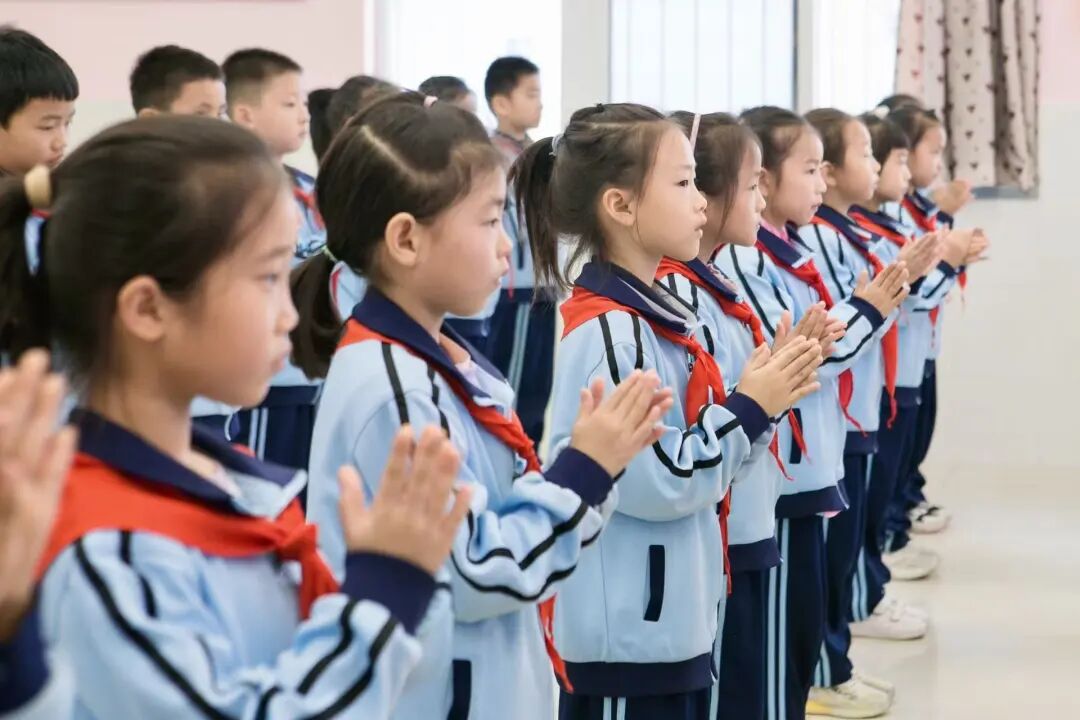少先队大队长郭子琪同学面向全体队员庄严领呼:“准备着,为共产主义事业而奋斗!”全体队员以洪亮整齐的声音坚定回应:“时刻准备着!”这声庄严呼号,既是新时代对少年儿童的殷切召唤,更是全体队员肩负红色使命、立志为共产主义事业奋斗的坚定信念与责任担当。