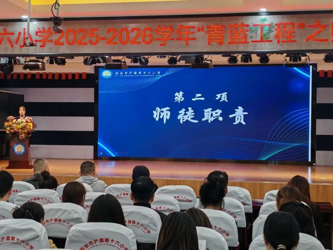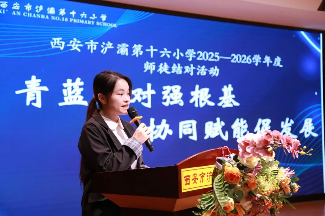 莫道秋风起,最美是“青蓝”。为加强教师队伍建设,充分发挥名师、骨干教师的“传、帮、带”示范引领作用,助力青年教师快速、稳健成长,提升学校教师队伍整体水平,10月11日,西安市浐灞第十六小学在温馨而庄重的氛围中,开展了以“青蓝结对强根基,协同赋能促发展”为主题的2025—2026学年“青蓝工程”师徒结对活动。