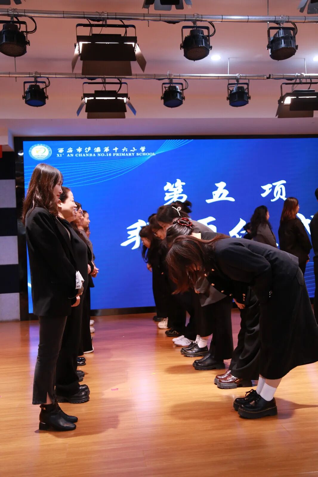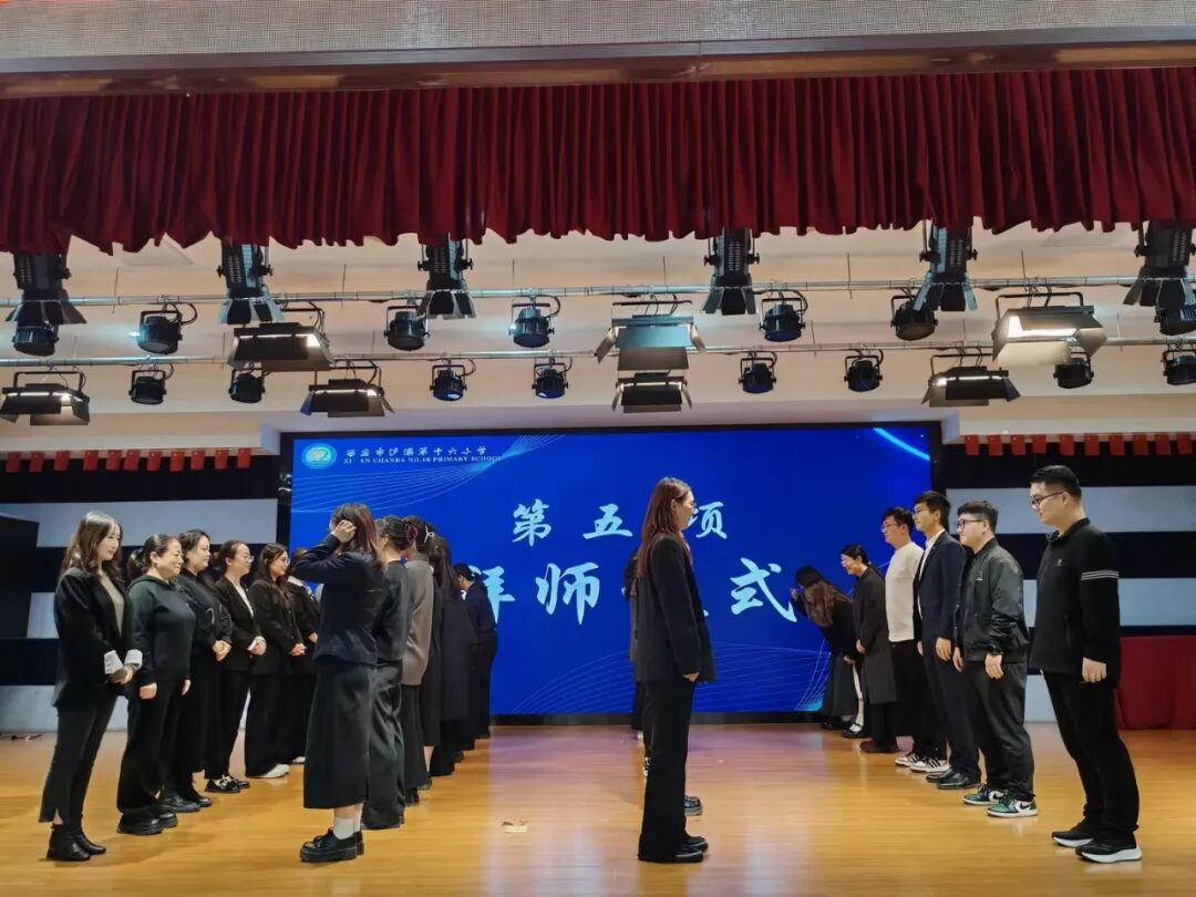 庄严而温馨的拜师仪式将活动推向高潮。徒弟们向师傅行拜师礼,徒弟们整齐站立,鞠躬向师傅们行礼,感念师恩。这一刻,尊师重道的优良传统与教育事业的薪火相传得到了生动的体现。