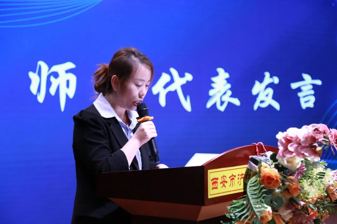 常洋洋老师代表青年教师感谢学校搭建的“青蓝结对”平台。她表示,这既是一份荣誉,更是一份责任。青年教师将虚心向师傅请教,潜心钻研,努力提升教学水平,并将所学积极应用于实践,争取早日成长为让学生、家长和学校都满意的优秀教师。