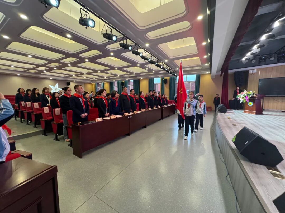 大会在激昂的出旗曲中正式拉开帷幕,雷遗晨悦同学沉稳地指挥全体队员齐声高唱队歌,嘹亮的歌声展现出少先队员们蓬勃的朝气与昂扬的精神。