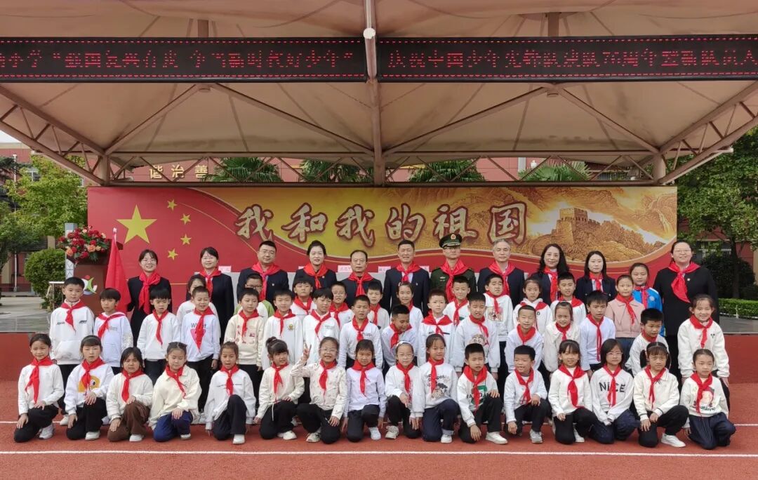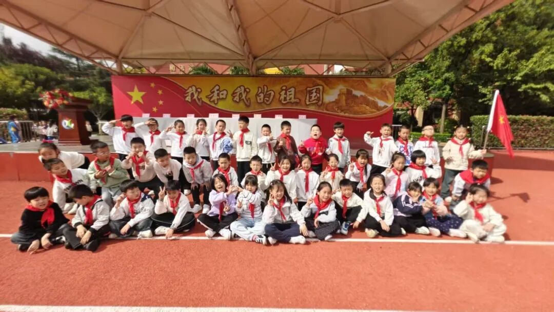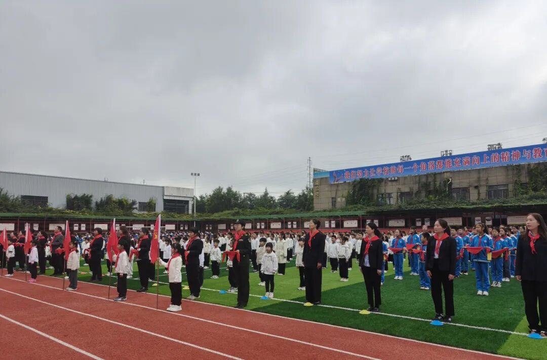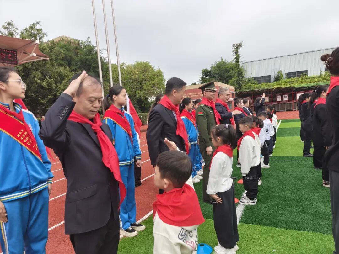 仪式在激昂奋进的《少年中国梦》中拉开帷幕。旗手们迈着坚定有力的步伐,护卫着中国少年先锋队队旗庄严入场。全体少先队员凝视队旗,敬上标准队礼,目光中满是对组织的热爱与崇敬。随后,全场齐声高唱《我们是共产主义接班人》,嘹亮的歌声传递着新时代少先队员的昂扬斗志与坚定信念。