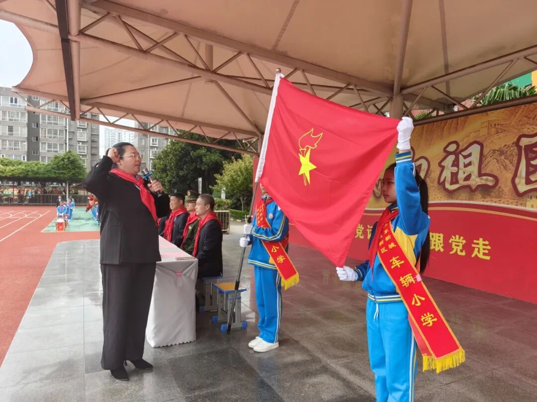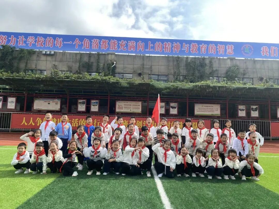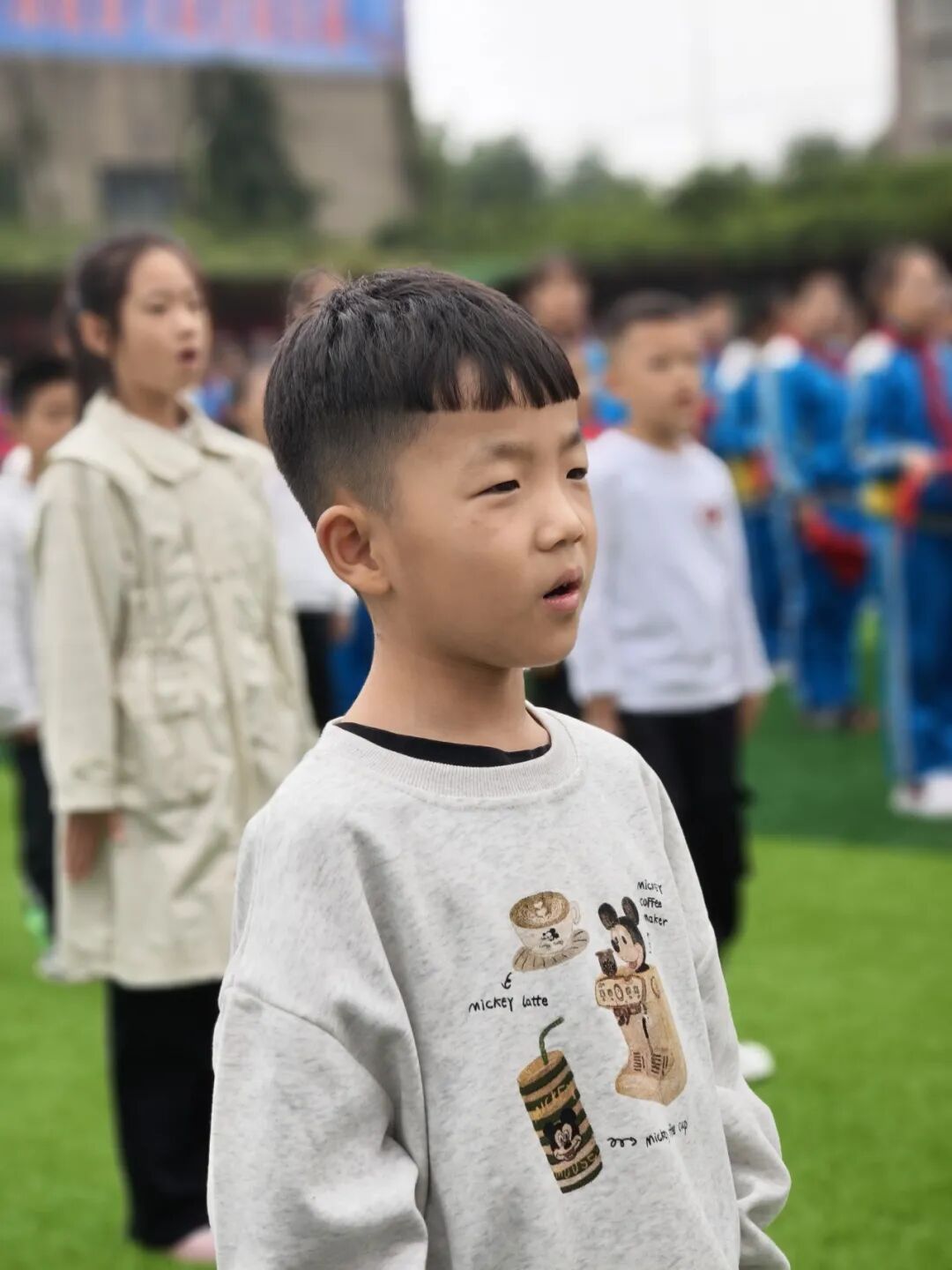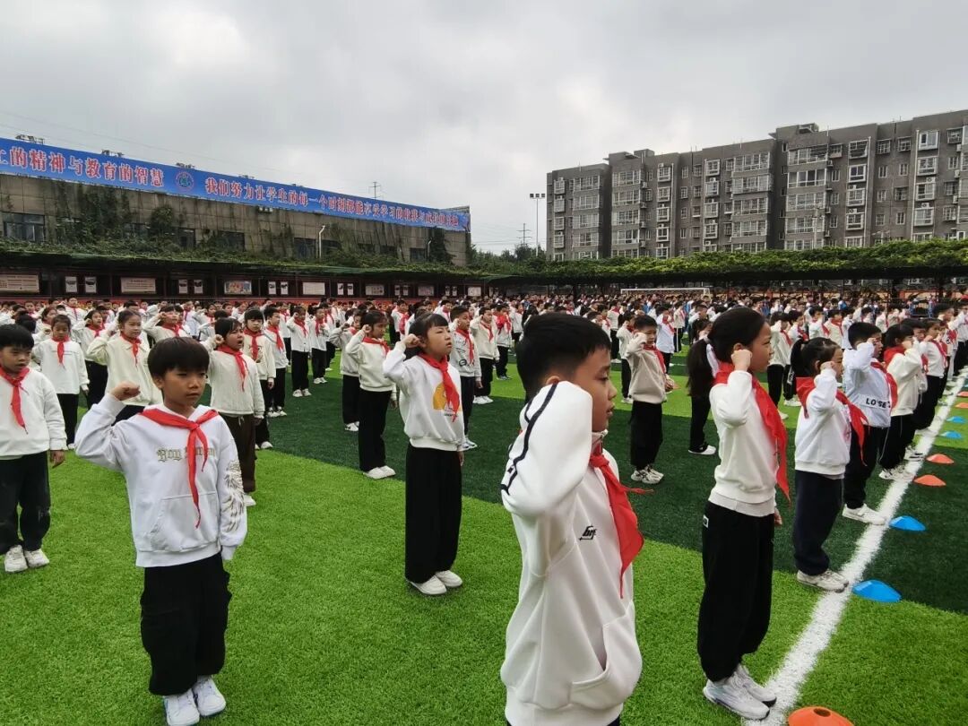 仪式在激昂奋进的《少年中国梦》中拉开帷幕。旗手们迈着坚定有力的步伐,护卫着中国少年先锋队队旗庄严入场。全体少先队员凝视队旗,敬上标准队礼,目光中满是对组织的热爱与崇敬。随后,全场齐声高唱《我们是共产主义接班人》,嘹亮的歌声传递着新时代少先队员的昂扬斗志与坚定信念。