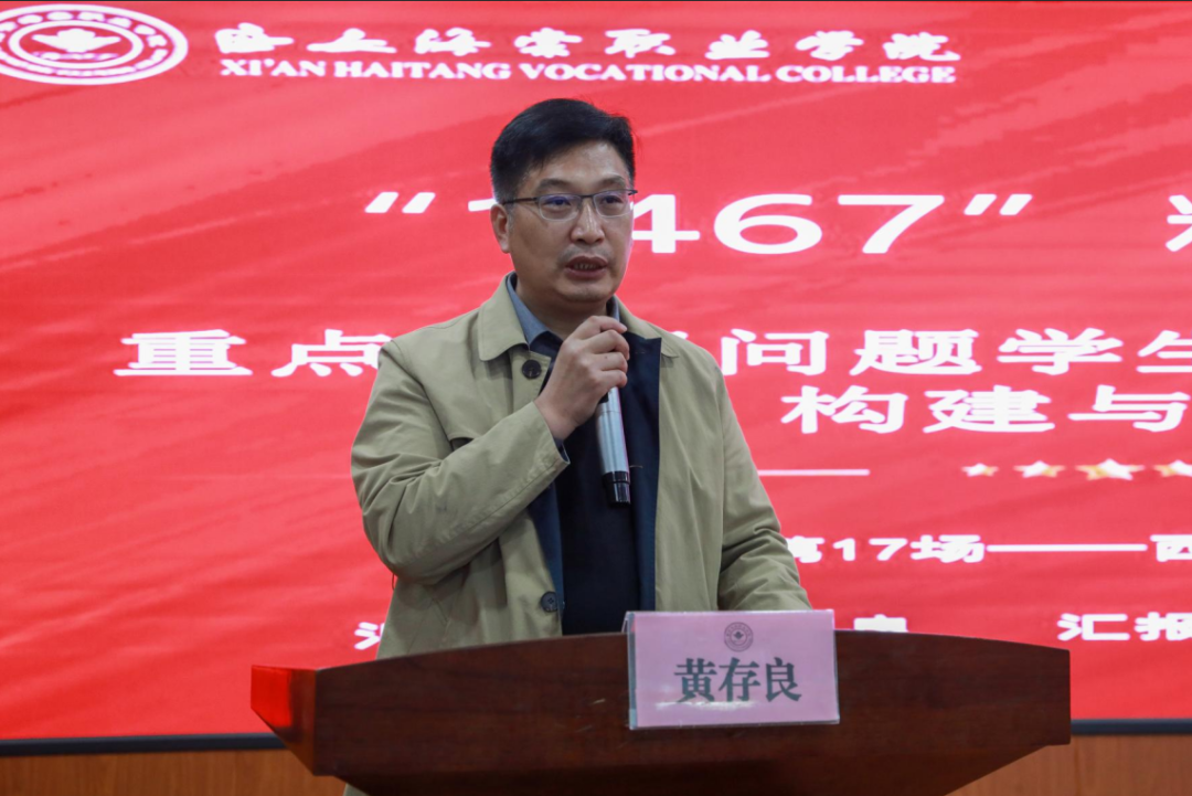 为进一步提升西安海棠职业学院心理健康教育工作队伍的专业能力,精准识别与科学管理学生心理危机,切实筑牢学生心理健康防线,2025年10月11日,西安海棠职业学院特邀请陕西理工大学心理健康教育中心主任黄存良教授作心理健康教育工作专题讲座。学生处处长康有为、全体学工队伍参加。本次讲座由心理咨询科杜佳玉老师主持。