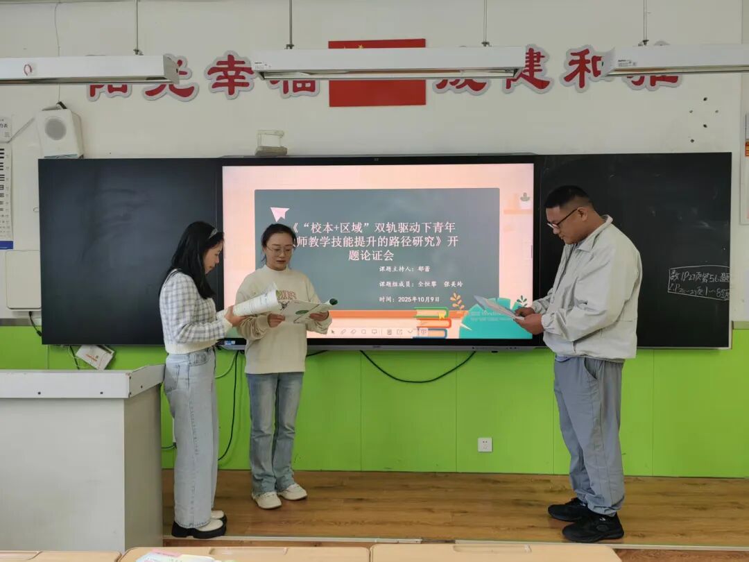 开题论证会上,各课题组从研究背景与意义、课题名称界定与解读、研究步骤与举措、成果预期与呈现四个维度展开深度研讨。人工智能领域,课题组教师深挖学科特色,探索AI技术在教学中的创新应用。青年教师成长领域,大家立足“校本+区域”双轨机制,探索青年教师成长路径。