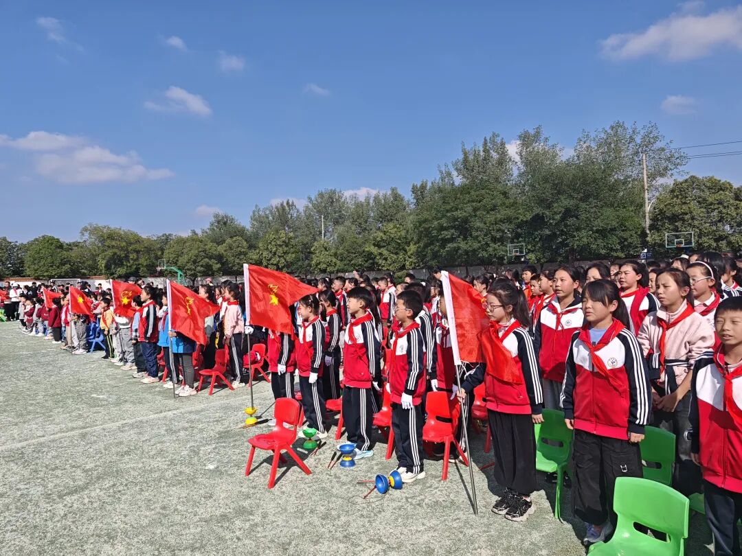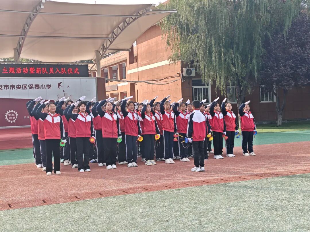 活动伊始,鼓号队奏响出旗曲,大队旗手韩紫诺与护旗手周子怡、韩依彤迈着坚定的步伐出旗,全体少先队员行队礼,目光中满是对少先队组织的崇敬。
