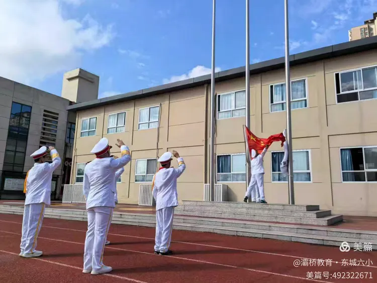 上午全体师生在操场举行升旗仪式,五年级四班的学生用青春洋溢的表演《强国少年》致敬这个光荣的日子。