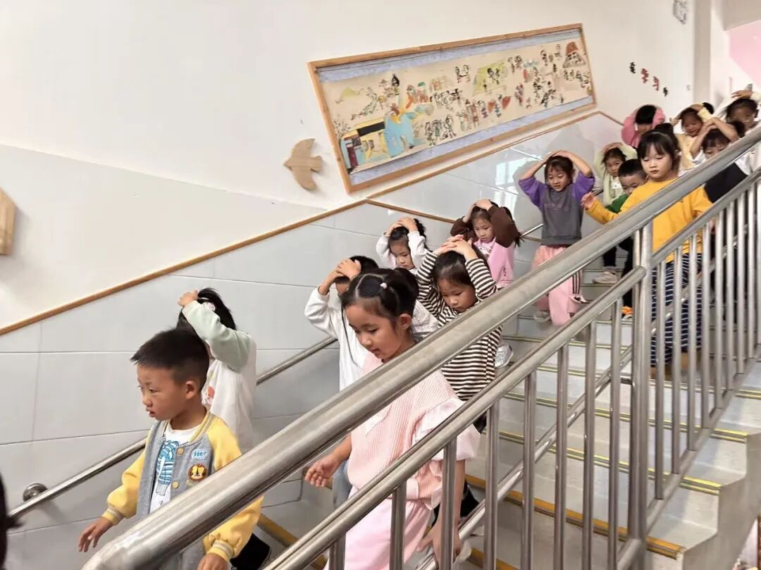 随着模拟地震警报响起,教师们迅速组织幼儿双手抱头、蹲在课桌下避险;警报解除后,又带领孩子们按照预定路线,弯腰、扶墙、快速有序地撤离到操场安全区域,整个过程紧张有序,孩子们都能听从指令完成动作。演练后,教师借助儿歌、提问等互动,帮助幼儿巩固“不慌张、听指挥、快撤离”的逃生要点。