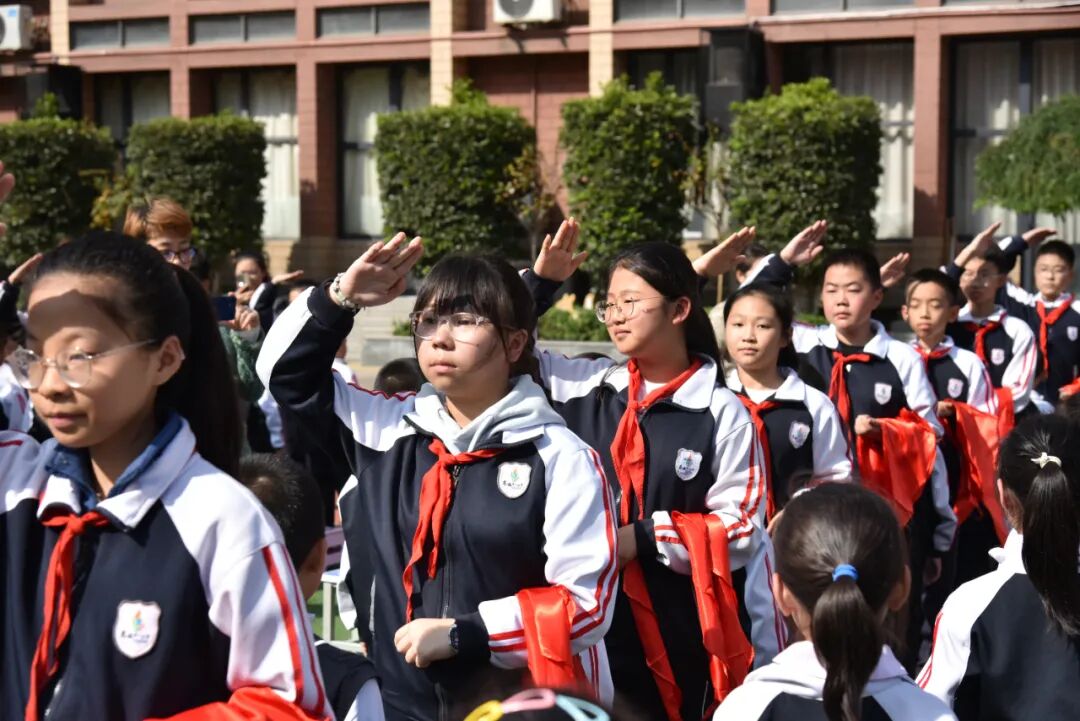 每一次凝视队旗,都能感受到 “时刻准备着” 的召唤。每一次致敬,都饱含着对先辈的缅怀。全场师生高声齐唱《我们是共产主义接班人》,这是我们对少先队的承诺,更是对祖国的告白。