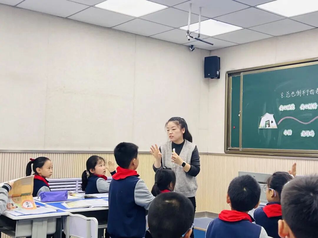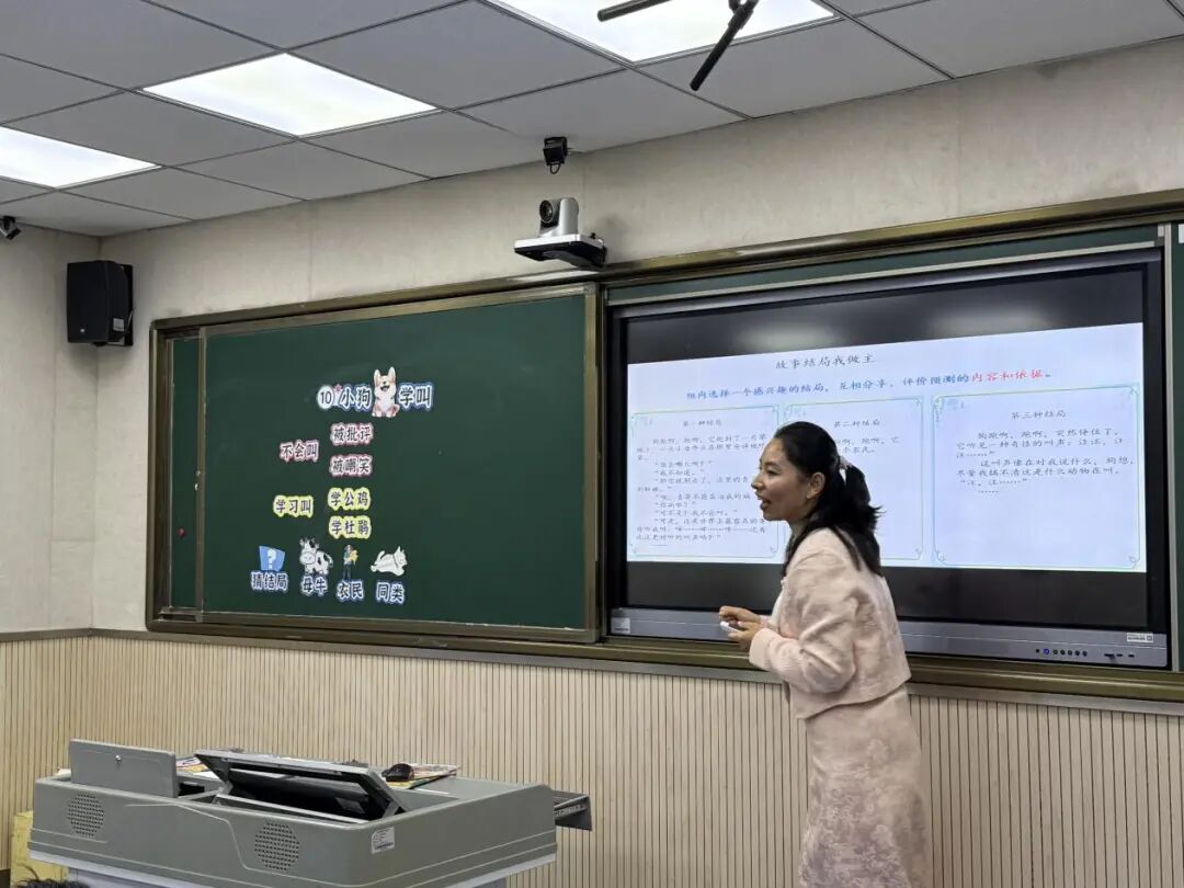 杨瑶老师的《小狗学叫》则在童话教学中展现了深度与广度。她以“多角度预测,提升批判思维”为目标,引导学生跳出“单一情节推测”的局限,从“故事结局的多元可能”“角色行为的合理性”等角度展开思考。课堂上,杨老师先让学生回顾前文小狗向小公鸡、杜鹃学叫的经历,梳理“尝试—失败—成长”的叙事逻辑,再以此为基础,预测小狗后续的命运。学生们不仅预测了“小狗学会叫”的常规结局,更提出了“小狗找到同类却因‘独特叫声’引发新故事”“小狗放弃学叫选择其他生存技能”等创意性预测。杨老师顺势引导学生对比不同预测的合理性与趣味性,在思辨中培养学生的批判思维与创新意识,让童话教学超越了“故事讲述”的表层,成为思维进阶的阶梯。