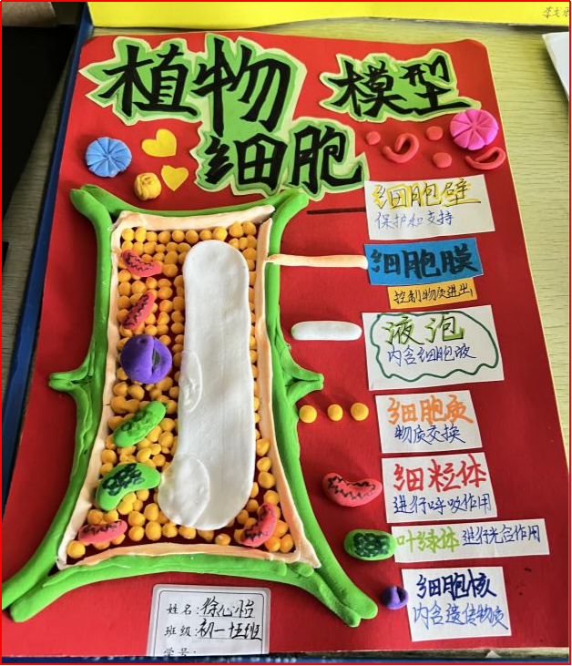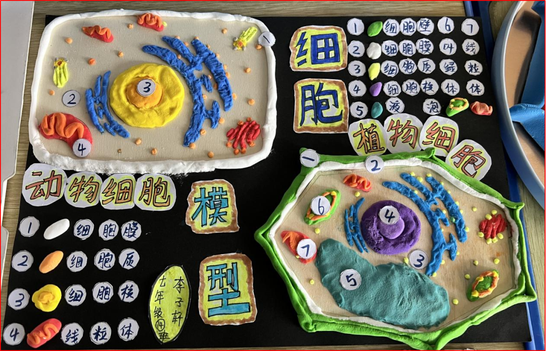 制作生物细胞模型,使学生把对细胞的神秘感变成了手工制作的浓厚兴趣。精美的构图、鲜艳的色彩、清晰的标注,使显微镜下的微观世界变得触手可及,让抽象的感念变得清晰直观。