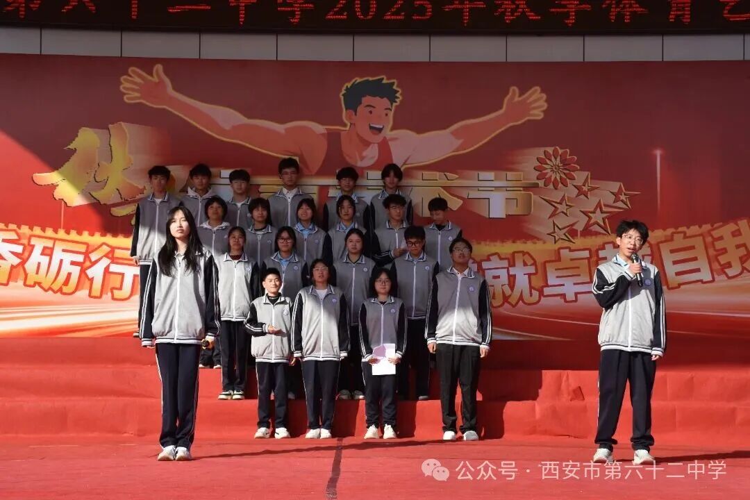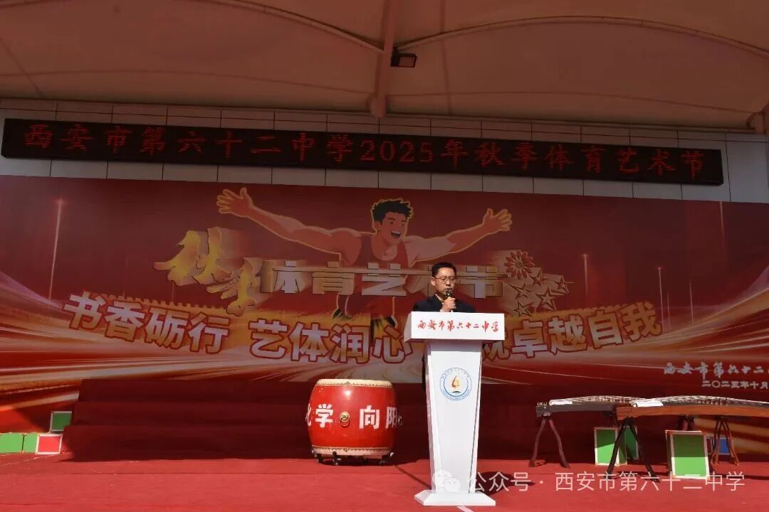 金风染叶,桂香漫溢校园;艺韵盈阶,青春点亮秋光。2025年10月15日下午,西安市第六十二中2025年秋季体育艺术节在全体师生的热切期盼中启幕。彩旗猎猎映晴空,掌声阵阵传暖意,莅临现场的五环中学名校+各学校和区内兄弟学校的领导及嘉宾、特邀嘉宾与全校师生齐聚操场,共赴这场以“书香砺行·艺体润心·成就卓越自我”为主题的体艺盛宴,让秋阳下的校园成为梦想绽放的舞台。