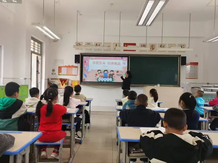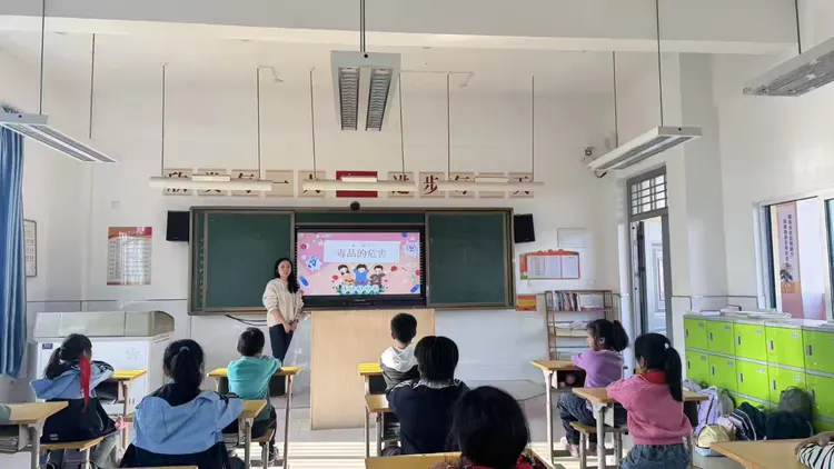 主题班会上,通过观看禁毒动画、图片,讲禁毒故事,读禁毒儿歌等形式,向学生介绍各类毒品的危害,让学生对毒品的危害性有了更深刻的体会。